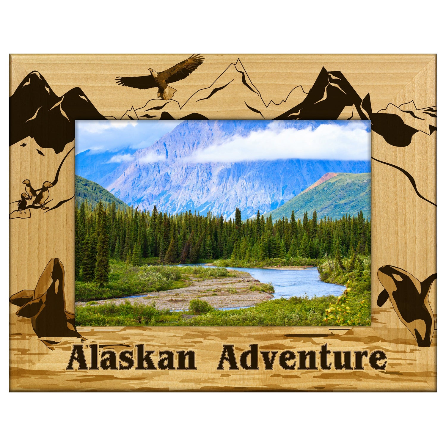 Capture your unforgettable moments with the Alaskan Adventure engraved wooden picture frame, a perfect blend of rustic charm and personal touch. This frame features intricate engravings that evoke the spirit of the great outdoors, making it an ideal showcase for your favorite photos from your Alaskan escapades.