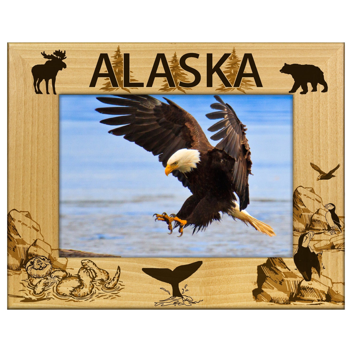 Capture the wild beauty of Alaska with our Alaska Animals Engraved Wooden Picture Frame. This frame features intricate engravings of iconic Alaskan wildlife, making it a perfect home for your cherished memories.