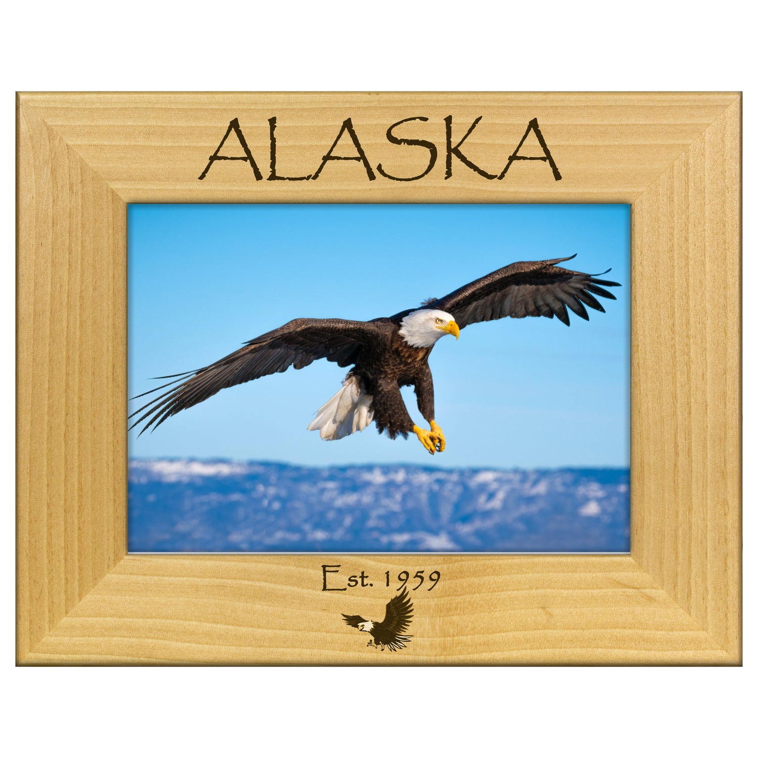 Capture your cherished memories with the stunning Alaska Eagle Engraved Wooden Picture Frame. This frame features a beautifully detailed eagle design that adds a touch of nature's majesty to your home decor.