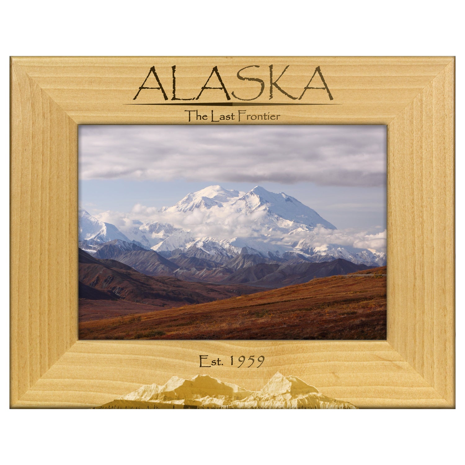 Capture your favorite memories with the stunning Alaska Mountain engraved wooden picture frame. Crafted from high-quality wood, this frame features intricate mountain designs that add a touch of nature's beauty to your home decor.
