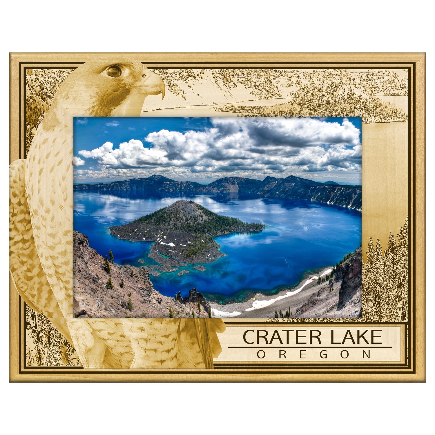Capture your favorite memories in style with the Crater Lake Hawk engraved wooden picture frame. This frame features a stunning hawk design that adds a touch of nature-inspired elegance to any space.