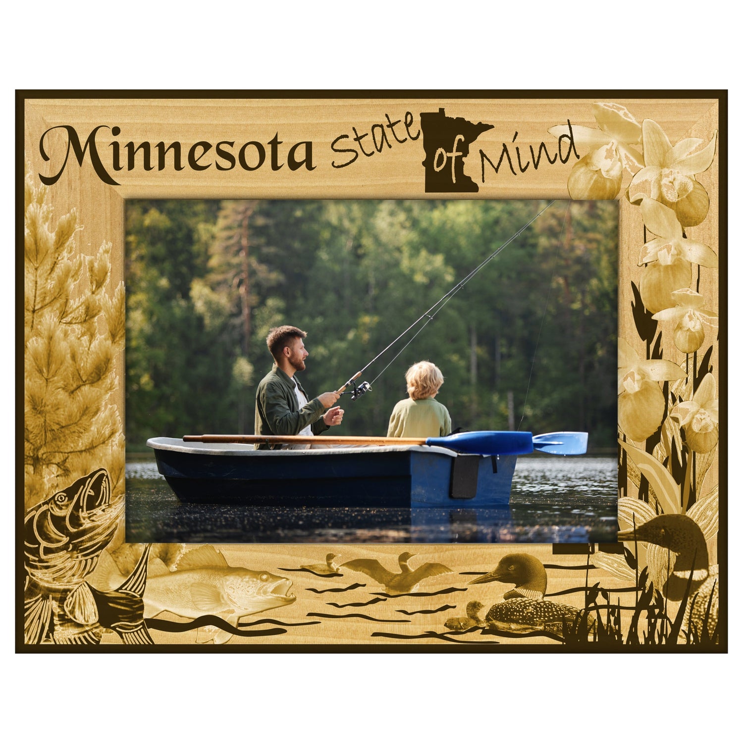 Capture the essence of Minnesota with our beautifully engraved wooden picture frame, designed to showcase your favorite memories while celebrating the unique spirit of the North Star State. This frame features a charming Minnesota State of Mind engraving that adds a personal touch to any home decor.