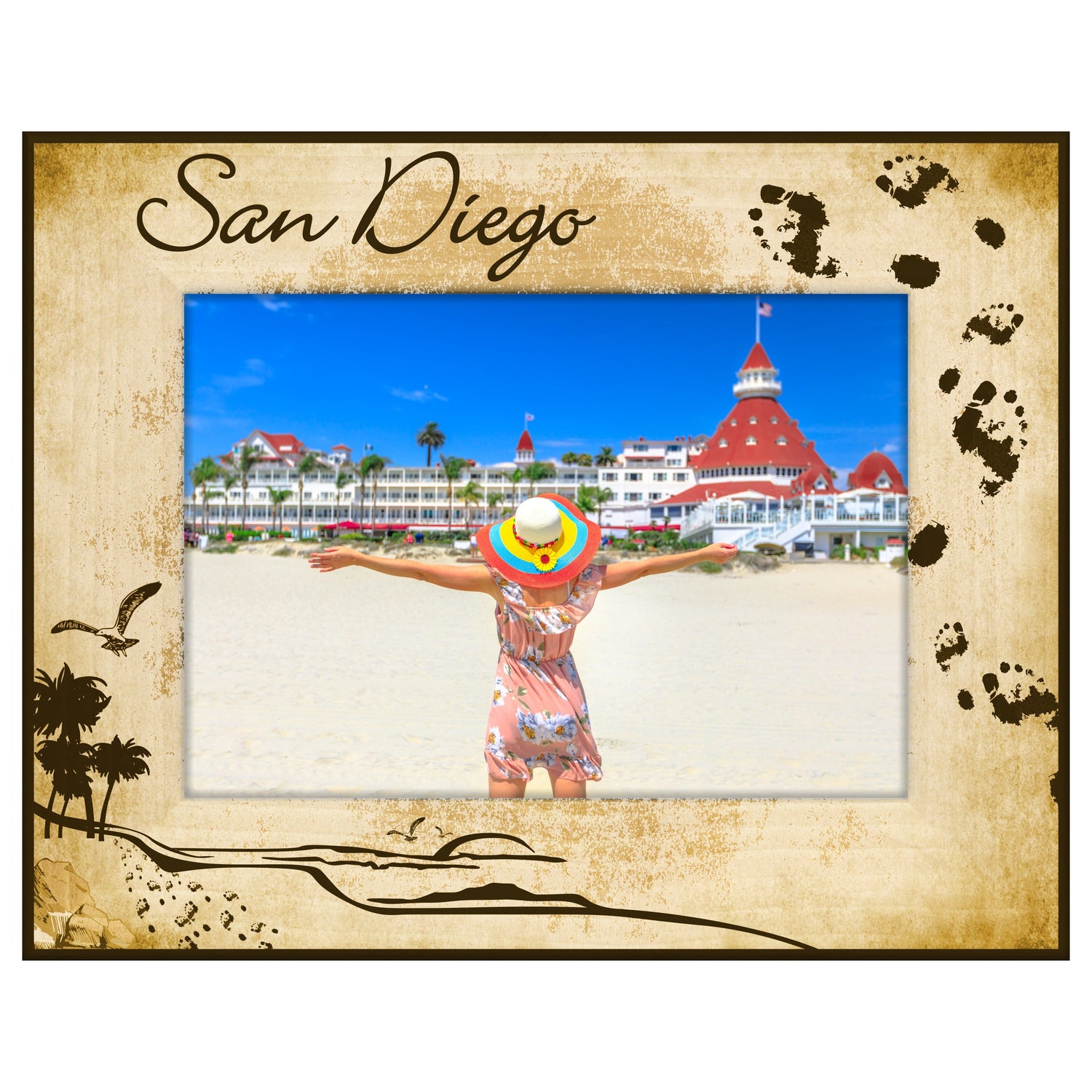 Capture the essence of your beach memories with the San Diego Beach Footprints Engraved Wooden Picture Frame. This beautifully crafted frame features a unique design that showcases the iconic footprints in the sand, making it the perfect way to display your favorite seaside moments.