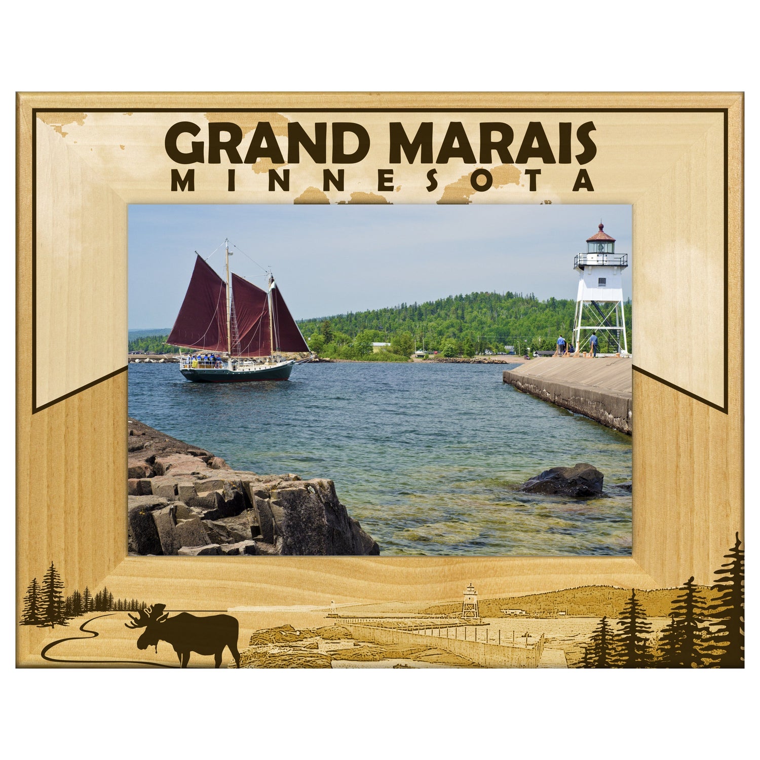 Capture your cherished memories with our Grand Marais Minnesota engraved wooden picture frame. This frame features a beautifully engraved design that celebrates the charm of Grand Marais, making it a perfect addition to your home decor or a thoughtful gift for loved ones.