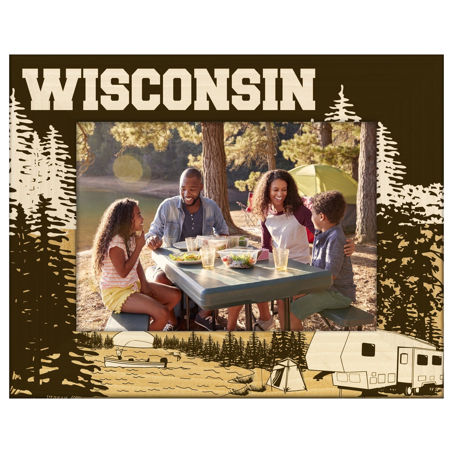 Capture your favorite camping memories with our Wisconsin Camping engraved wooden picture frame. This frame features a beautifully engraved design that celebrates the great outdoors and your love for adventure.