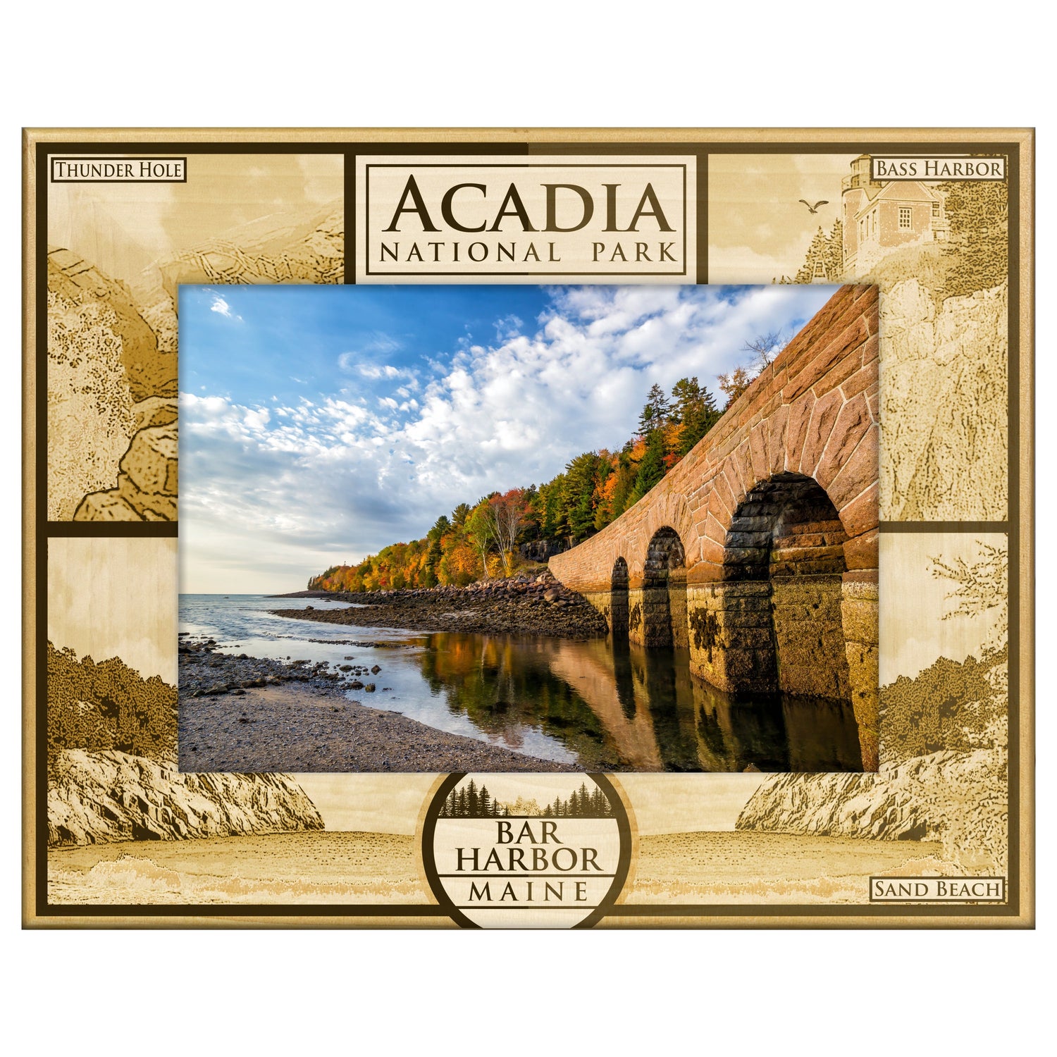 Capture the beauty of Acadia National Park with our stunning Quad Engraved Wooden Picture Frame. This frame features intricate engravings that celebrate the park's breathtaking landscapes.