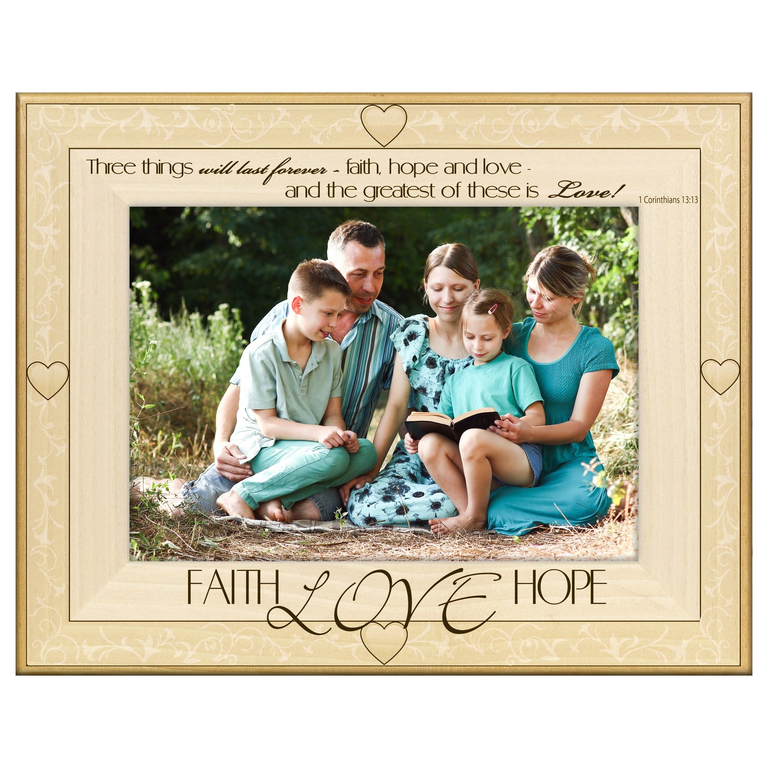 Capture your cherished memories with our Faith Love Hope engraved wooden picture frame. This frame beautifully showcases your favorite photos while adding a touch of inspiration to your home decor.