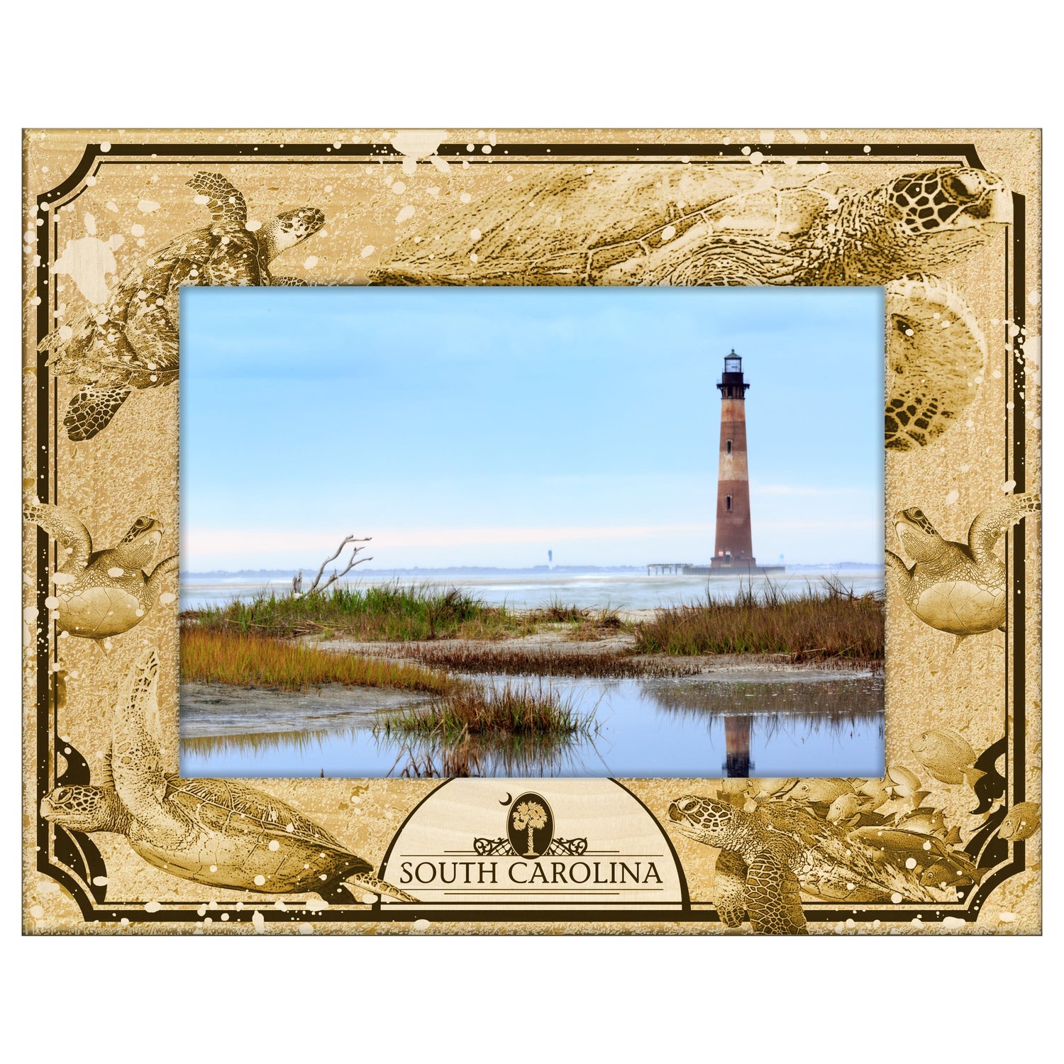 Capture your cherished memories with our South Carolina Turtles engraved wooden picture frame. This frame features a beautifully detailed turtle design that pays homage to the coastal charm of South Carolina.