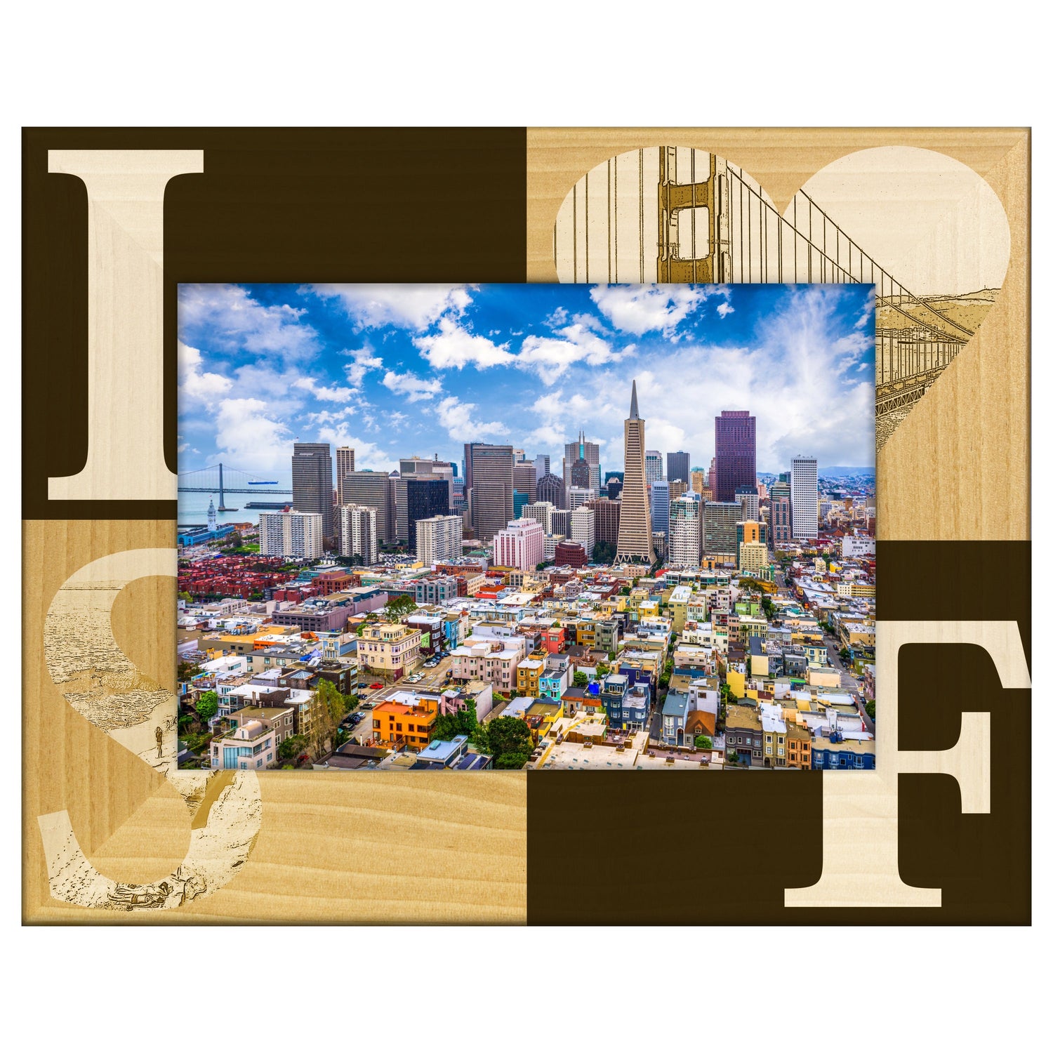 Capture your favorite San Francisco memories with the I Heart San Francisco engraved wooden picture frame. This charming frame features a heartfelt design that celebrates the iconic city.