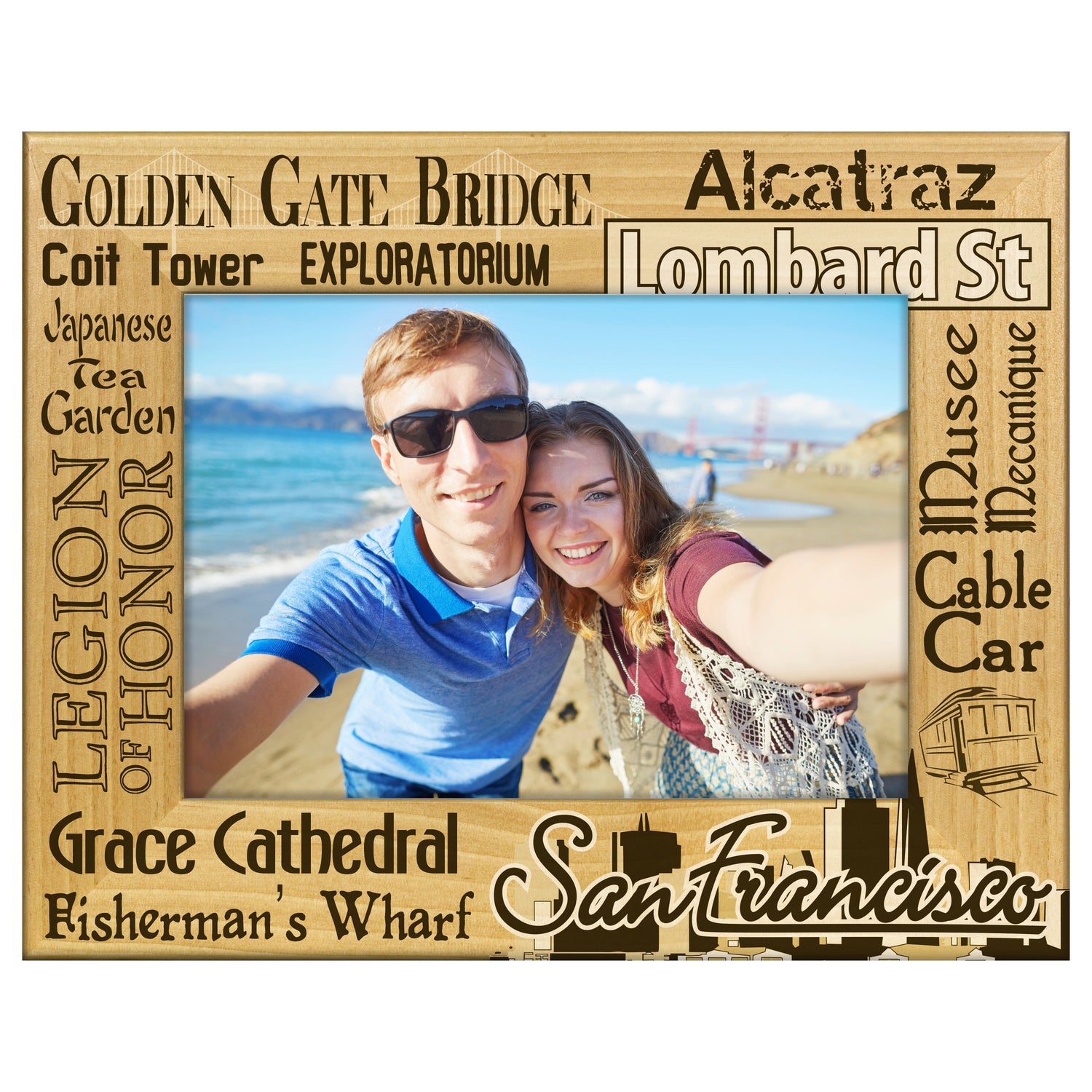 Showcase your cherished memories in style with the San Francisco Fonts Engraved Wooden Picture Frame. This frame features a unique engraving that adds a touch of sophistication to any space.