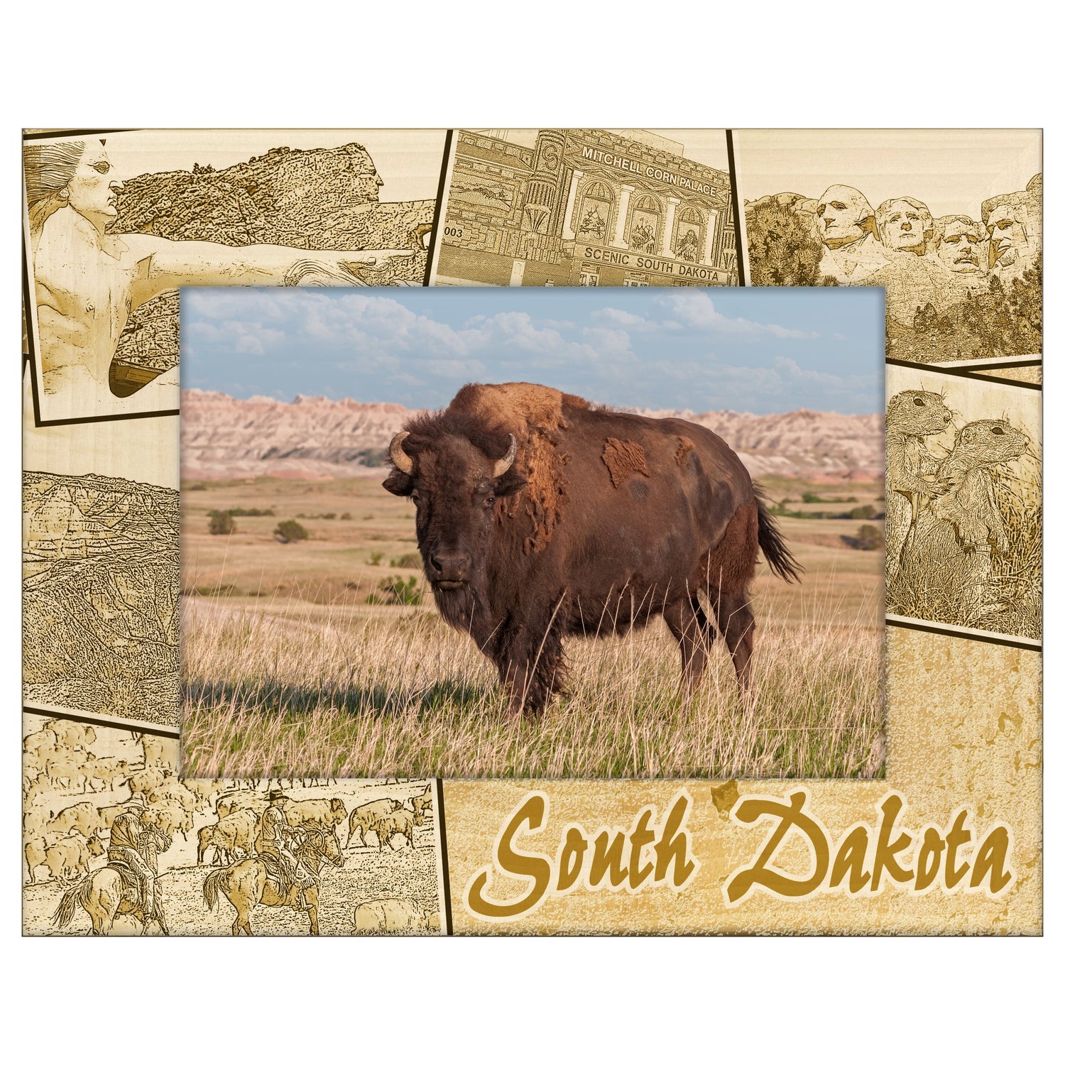 Capture your cherished memories with our South Dakota Collage Engraved Wooden Picture Frame. This frame features a beautifully engraved design that showcases the spirit of South Dakota, making it a perfect addition to your home or office.