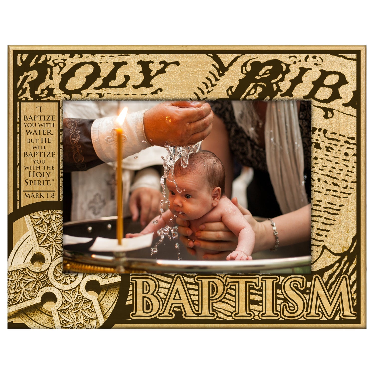 Capture the sacred moment of baptism with our beautifully engraved wooden picture frame. This elegant frame features a heartfelt scripture that adds a personal touch, making it a perfect keepsake for your little one's special day.