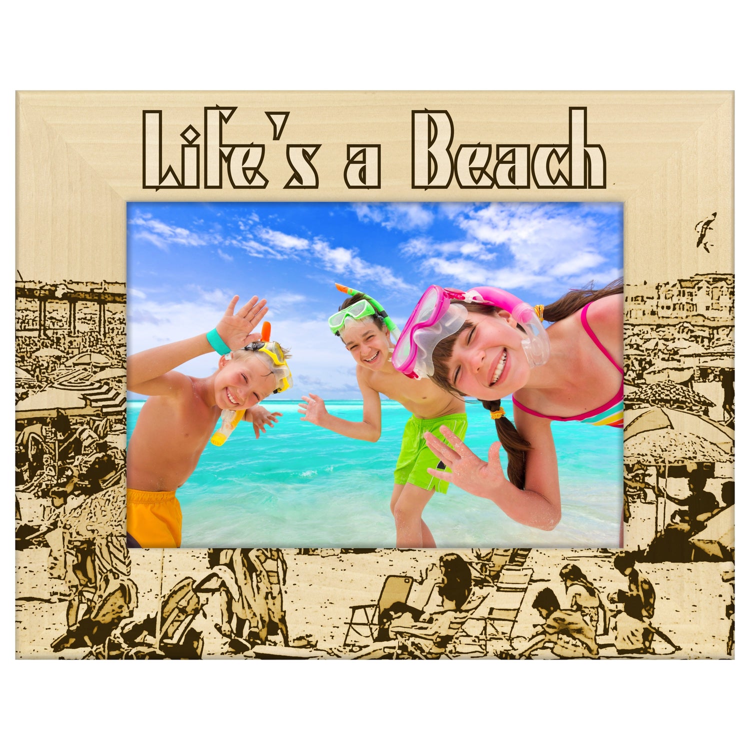 Capture your favorite beach memories with our Life's a Beach Shoreline engraved wooden picture frame. This charming frame adds a touch of coastal charm to any space.