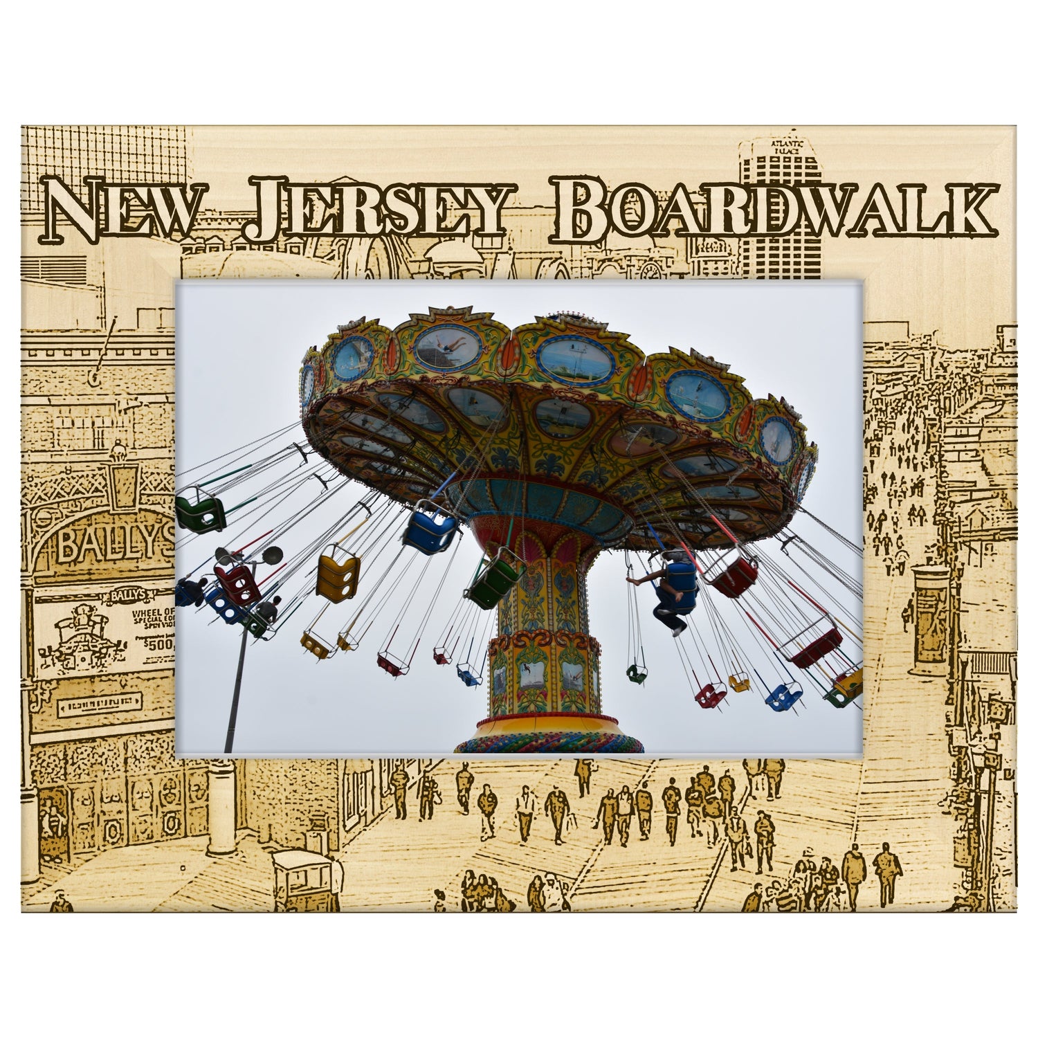 Capture your cherished memories with our New Jersey Boardwalk engraved wooden picture frame. This frame features a beautifully engraved design that pays homage to the iconic boardwalk.