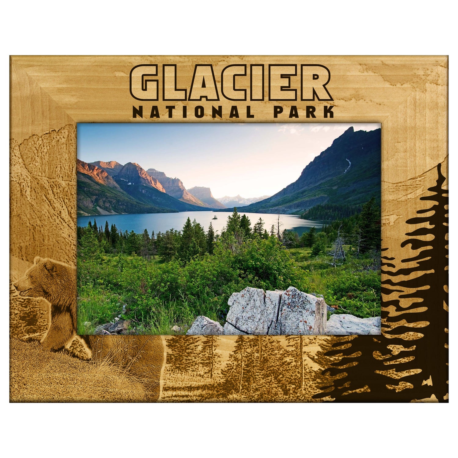 Capture your favorite memories with the Glacier National Park Bear Engraved Wooden Picture Frame. This stunning frame features a beautifully detailed bear engraving that pays homage to the majestic wildlife of Glacier National Park.