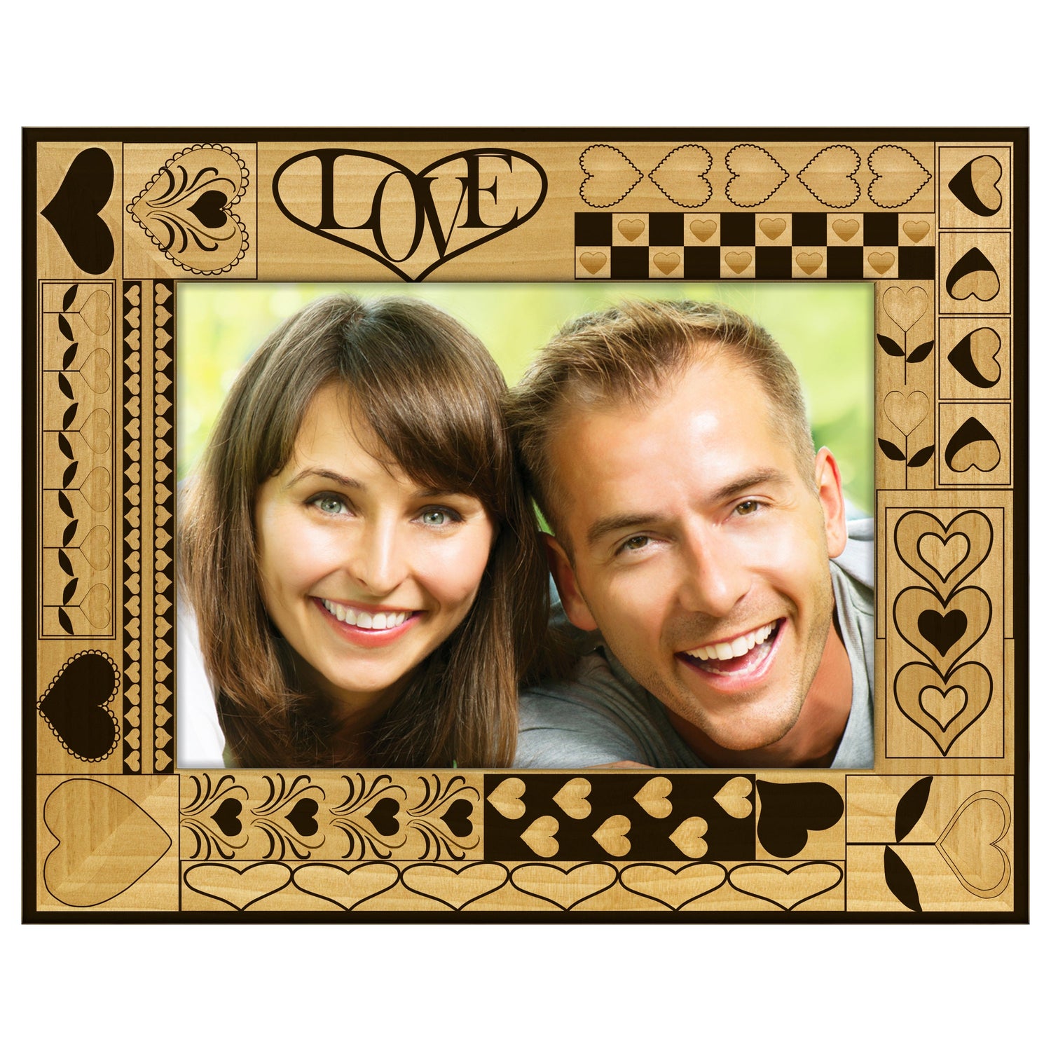 Celebrate love and cherished memories with our patchwork heart pattern engraved wooden picture frame. This unique frame features a delightful heart design that adds a touch of warmth and personality to any space.