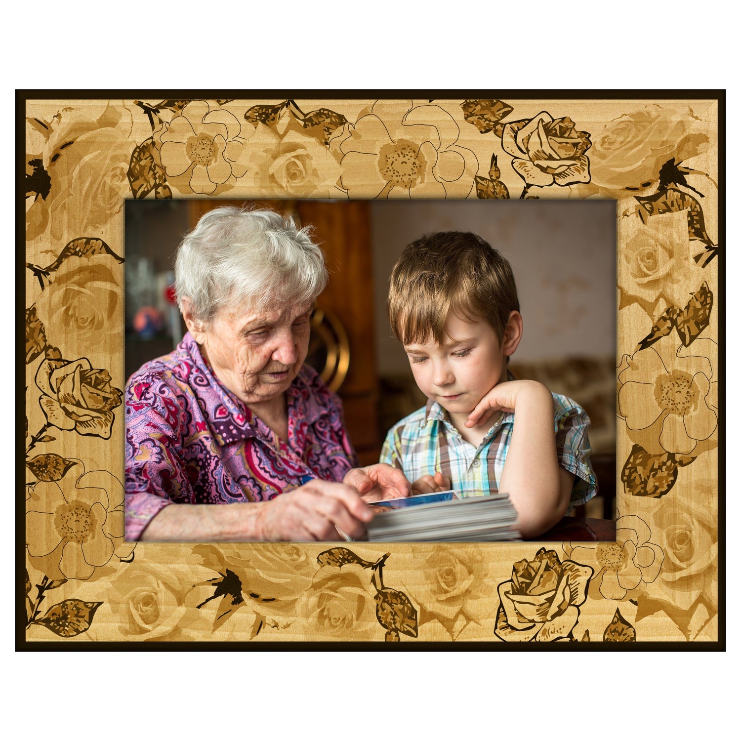 Elevate your home decor with our stunning rose pattern engraved wooden picture frame. This frame beautifully showcases your cherished memories while adding a touch of elegance to any room.