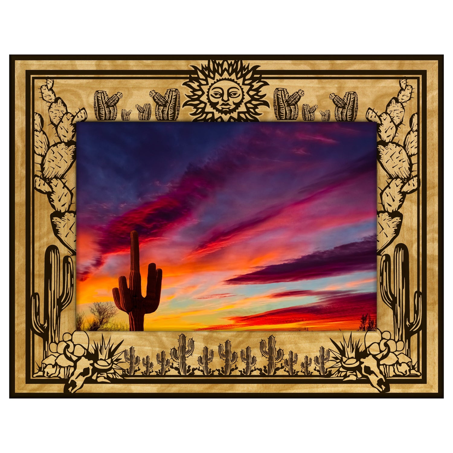 Showcase your favorite memories with our Desert Cacti Engraved Wooden Picture Frame. This unique frame features intricate cactus designs that add a touch of the Southwest to any space.