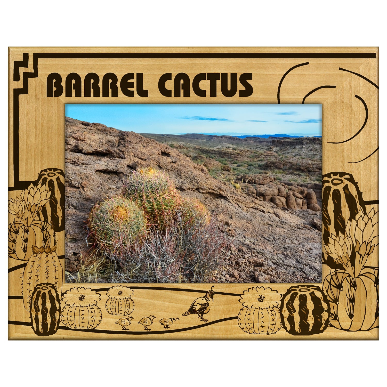 Capture your favorite memories with our Barrel Cactus Engraved Wooden Picture Frame. This unique frame features a beautifully detailed barrel cactus design, adding a touch of southwestern charm to any space.