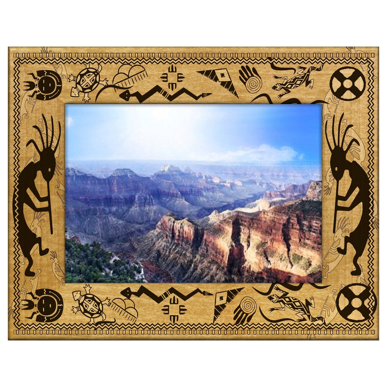 Showcase your cherished memories with our Southwest Kokopelli Engraved Wooden Picture Frame. This beautifully crafted frame features intricate Kokopelli designs that celebrate the spirit of the Southwest, adding a unique touch to any room.