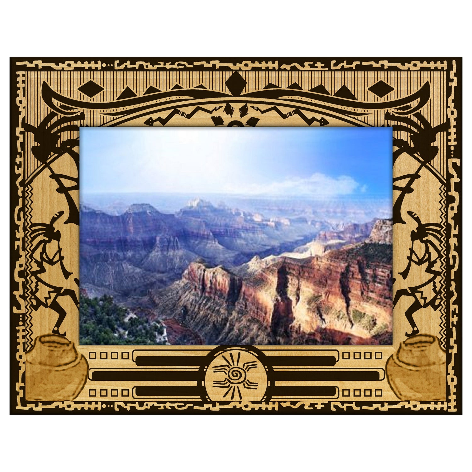 Capture your cherished memories in style with our Dancing Kokopelli Engraved Wooden Picture Frame. This beautifully crafted frame features intricate Kokopelli designs that add a touch of Southwest charm to any space.