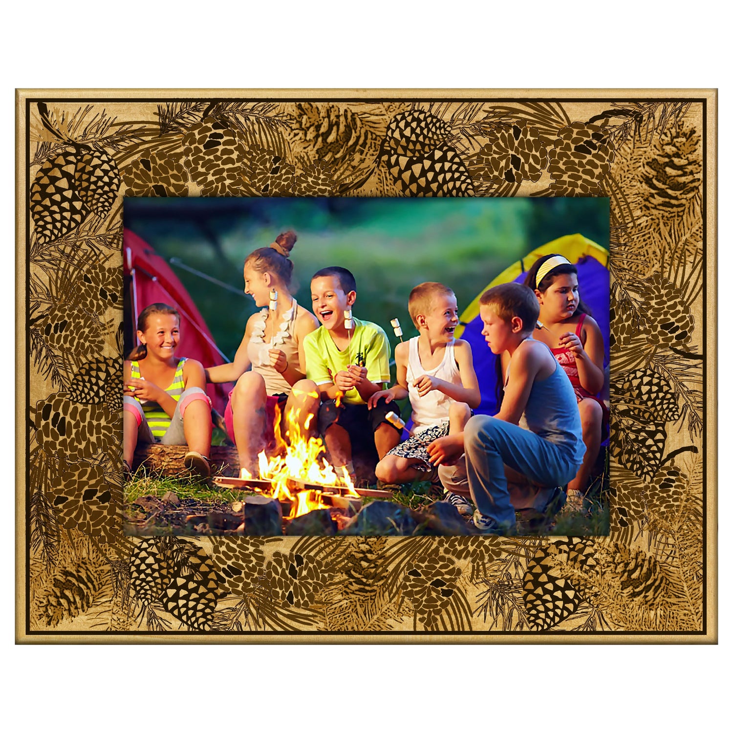 Capture your cherished memories in style with our Pine Cone Border Engraved Wooden Picture Frame. This beautifully crafted frame features a rustic pine cone design that adds a touch of nature to any space, making it perfect for your cabin, home, or office.