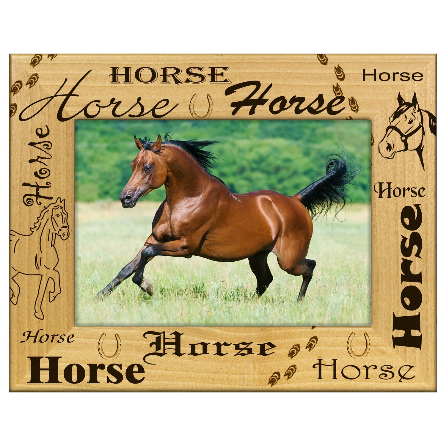 Capture your cherished memories with our horse fonts engraved wooden picture frame, designed for equestrian enthusiasts. This beautifully crafted frame showcases intricate horse-themed engravings, adding a personal touch to your favorite photos.