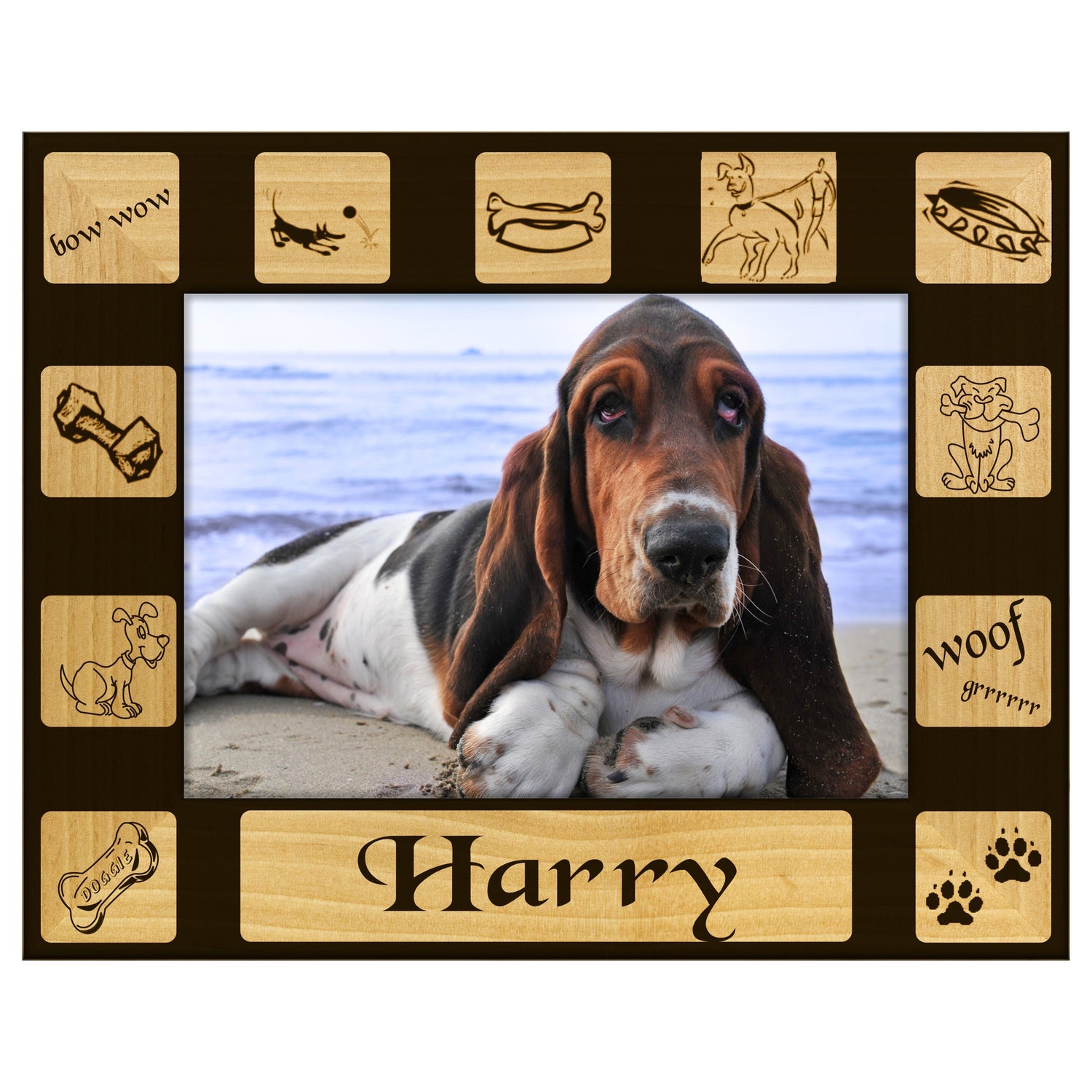 Engraved Alderwood Frame - A-FRM_-5-0013 - Dog Icon Squares Name