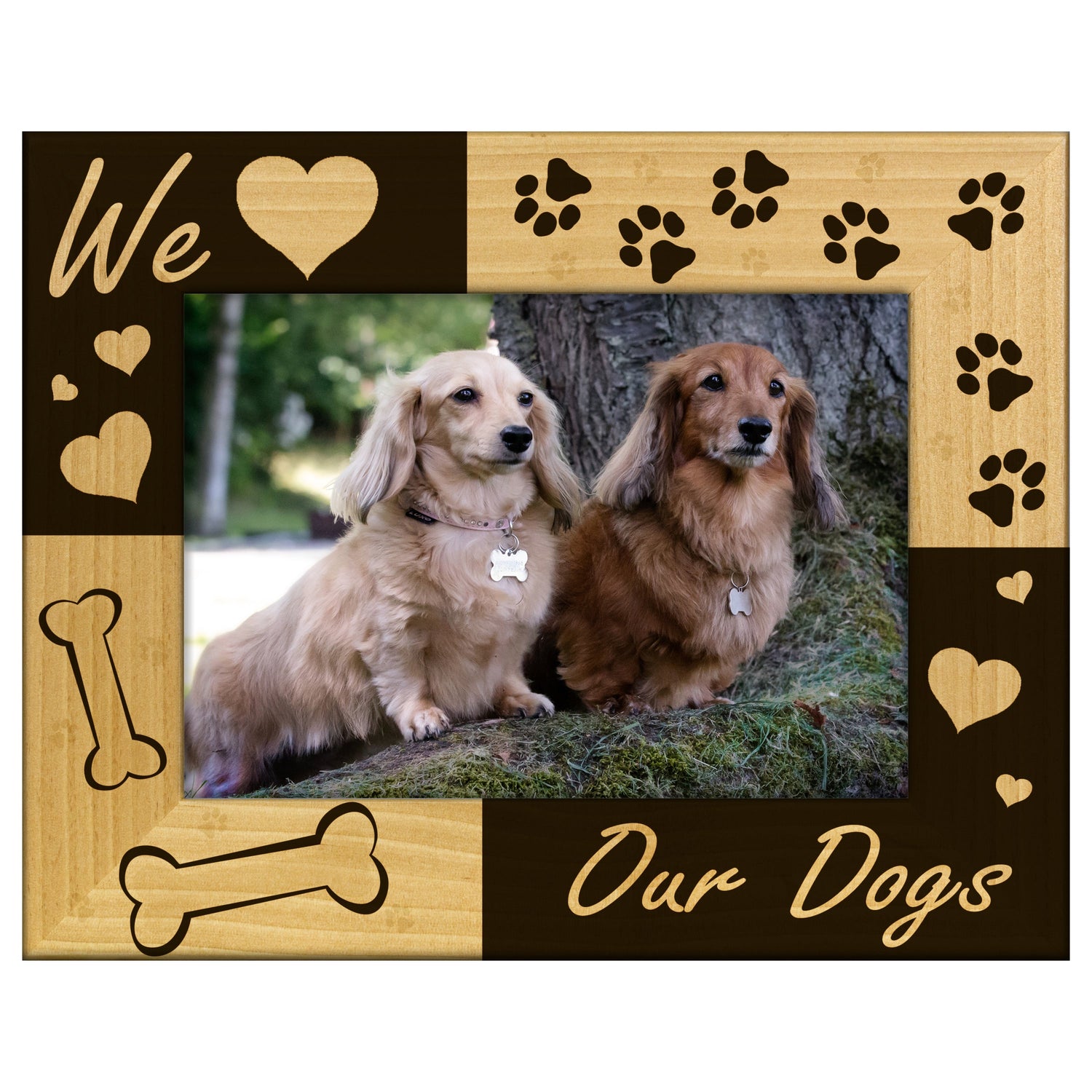 Capture the love you have for your furry friend with our We Love Our Dogs engraved wooden picture frame. This charming frame adds a personal touch to any space while showcasing your favorite pet photos.
