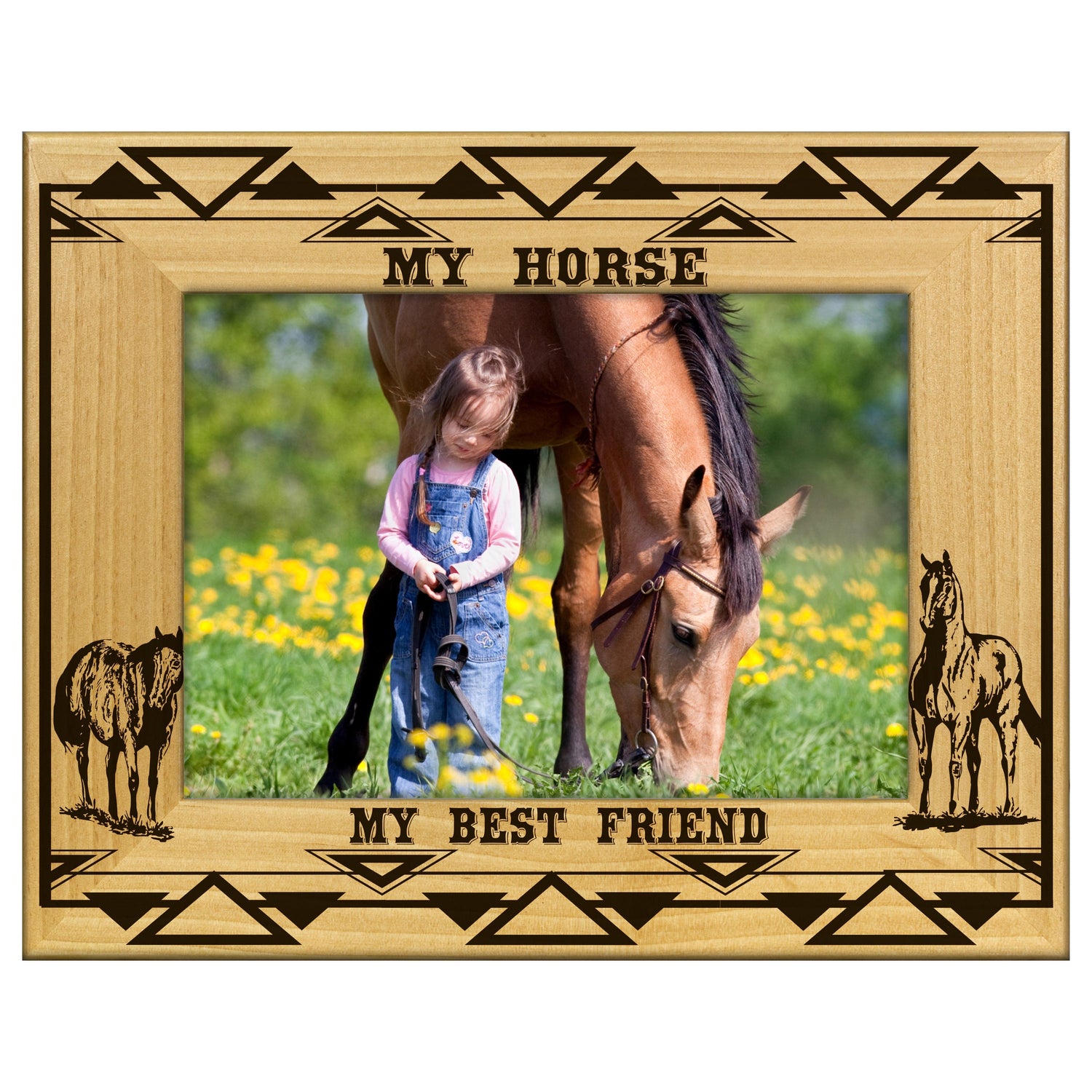Capture the bond between you and your equine best friend with our beautifully engraved wooden picture frame. This charming frame features a heartfelt design that celebrates your love for horses, making it the perfect way to showcase your favorite memories together.