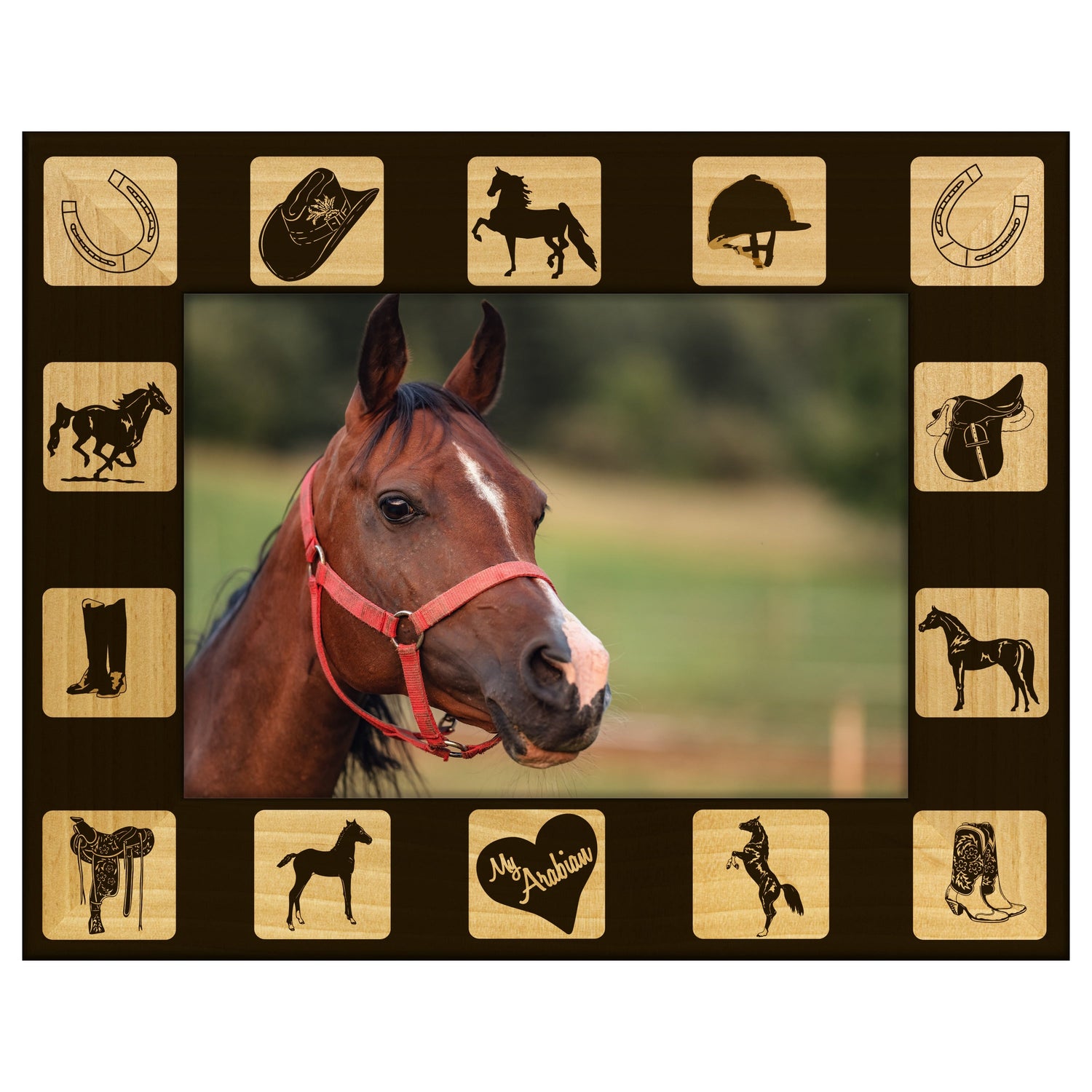 Capture the spirit of elegance with our Arabian horse themed engraved wooden picture frame. This stunning frame features intricate engravings that celebrate the beauty and grace of Arabian horses, making it a perfect addition to any horse lover's home.