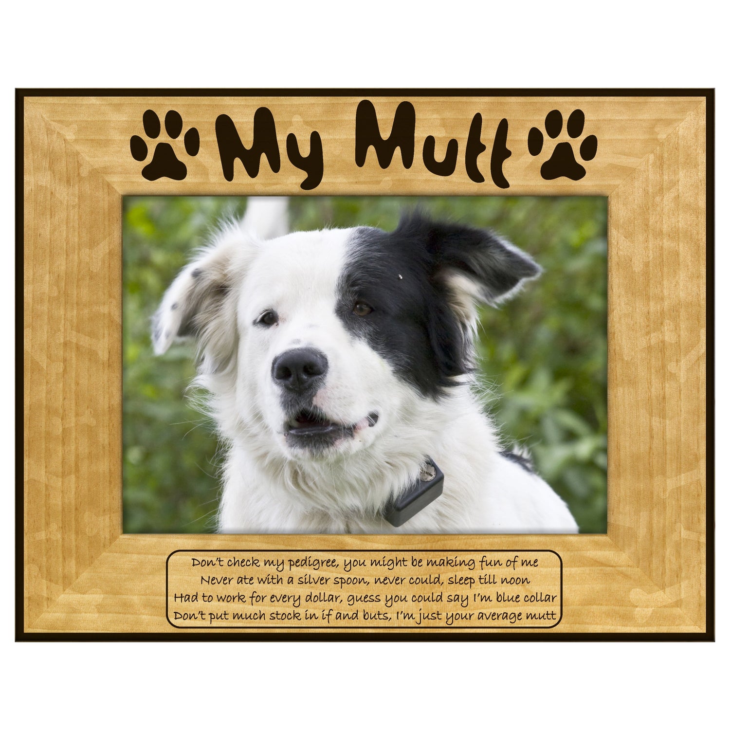 Celebrate your furry friend with the My Mutt Engraved Wooden Picture Frame. This charming frame features a personalized engraving that showcases a special message.