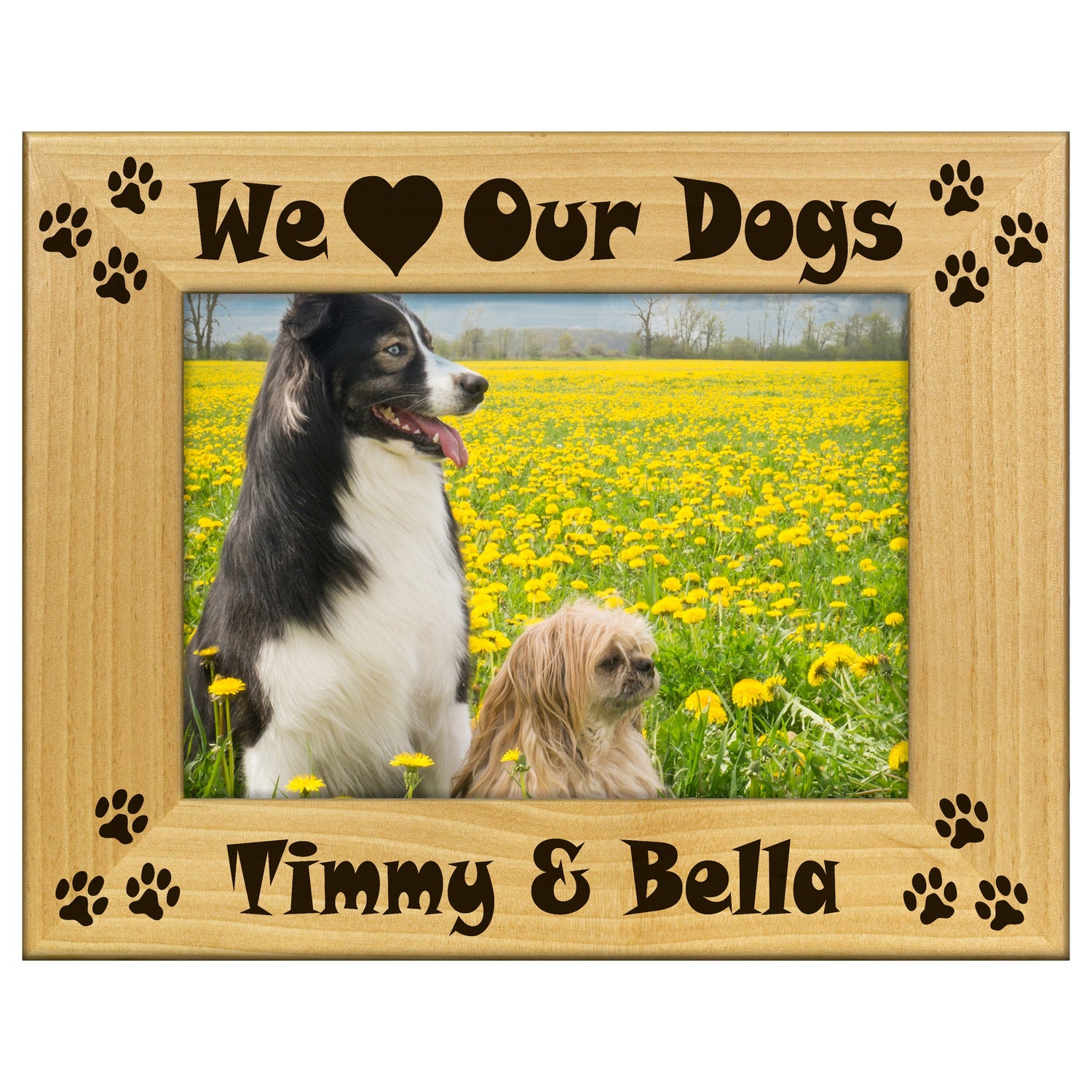 Celebrate your furry friend with our We Heart Our Dogs engraved wooden picture frame. This charming frame adds a personal touch to your home decor while showcasing your favorite pet photos.