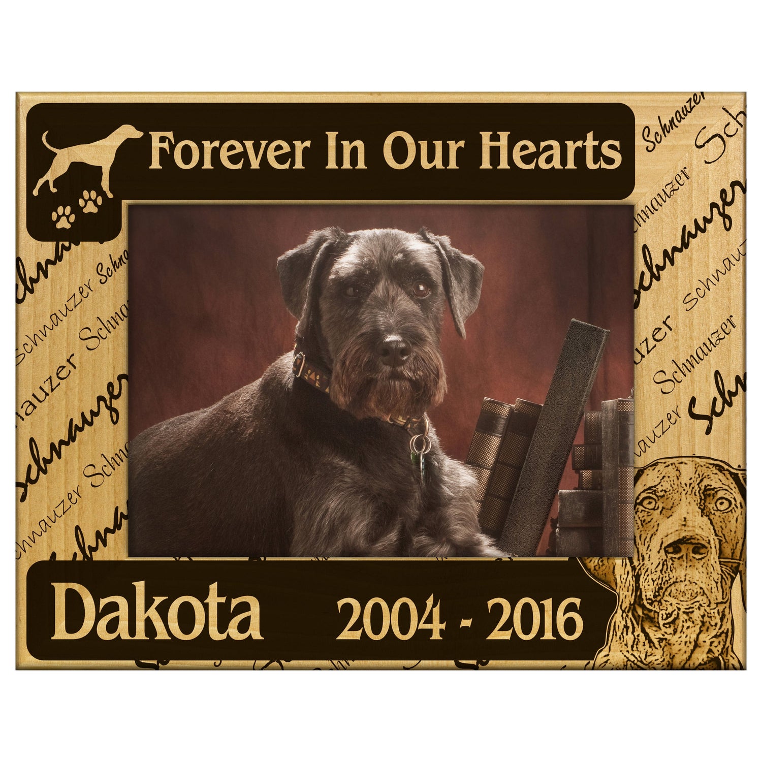 Capture the cherished memories of your beloved furry friend with our Forever in Our Hearts dog breed engraved wooden picture frame. This elegant frame features a heartfelt engraving that beautifully honors the bond you shared.