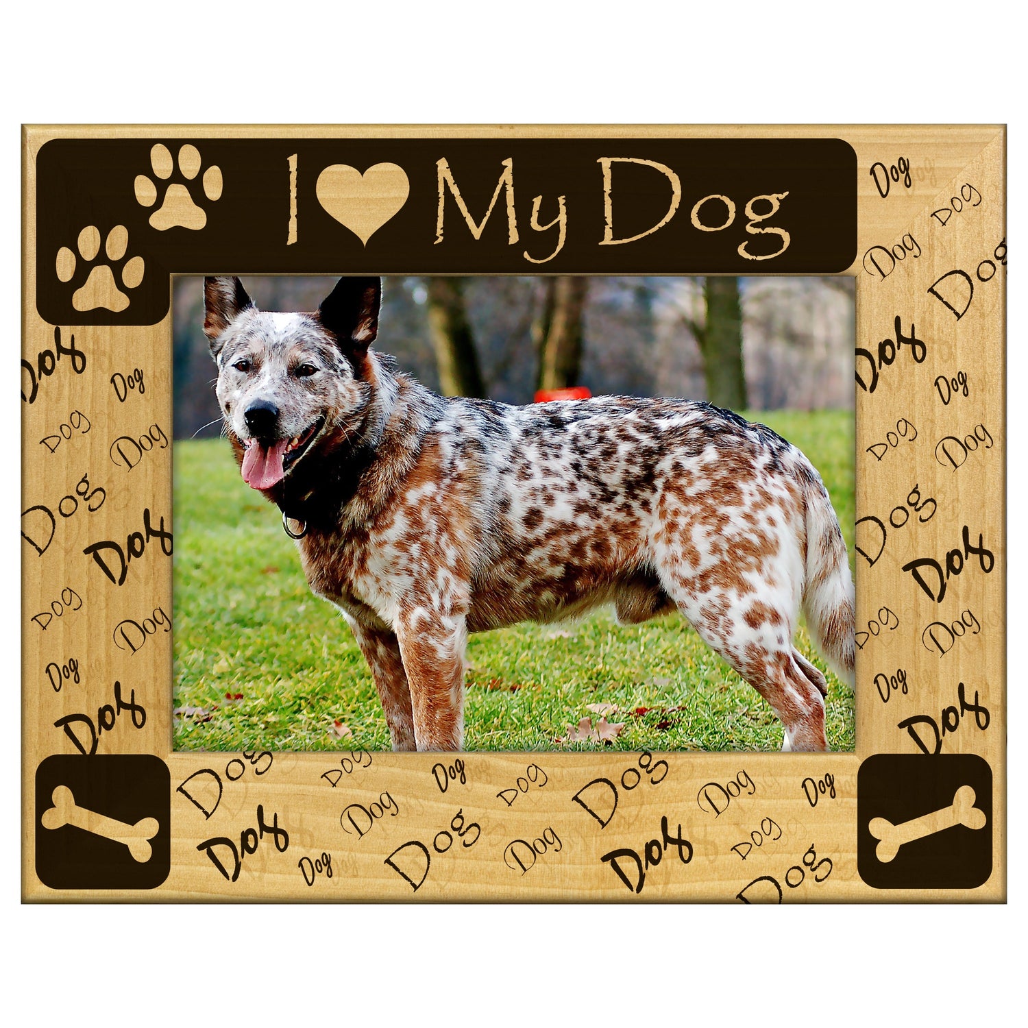 Celebrate your furry friend with our I Heart My Dog engraved wooden picture frame. This charming frame adds a personal touch to your home decor while showcasing your favorite pet photos.