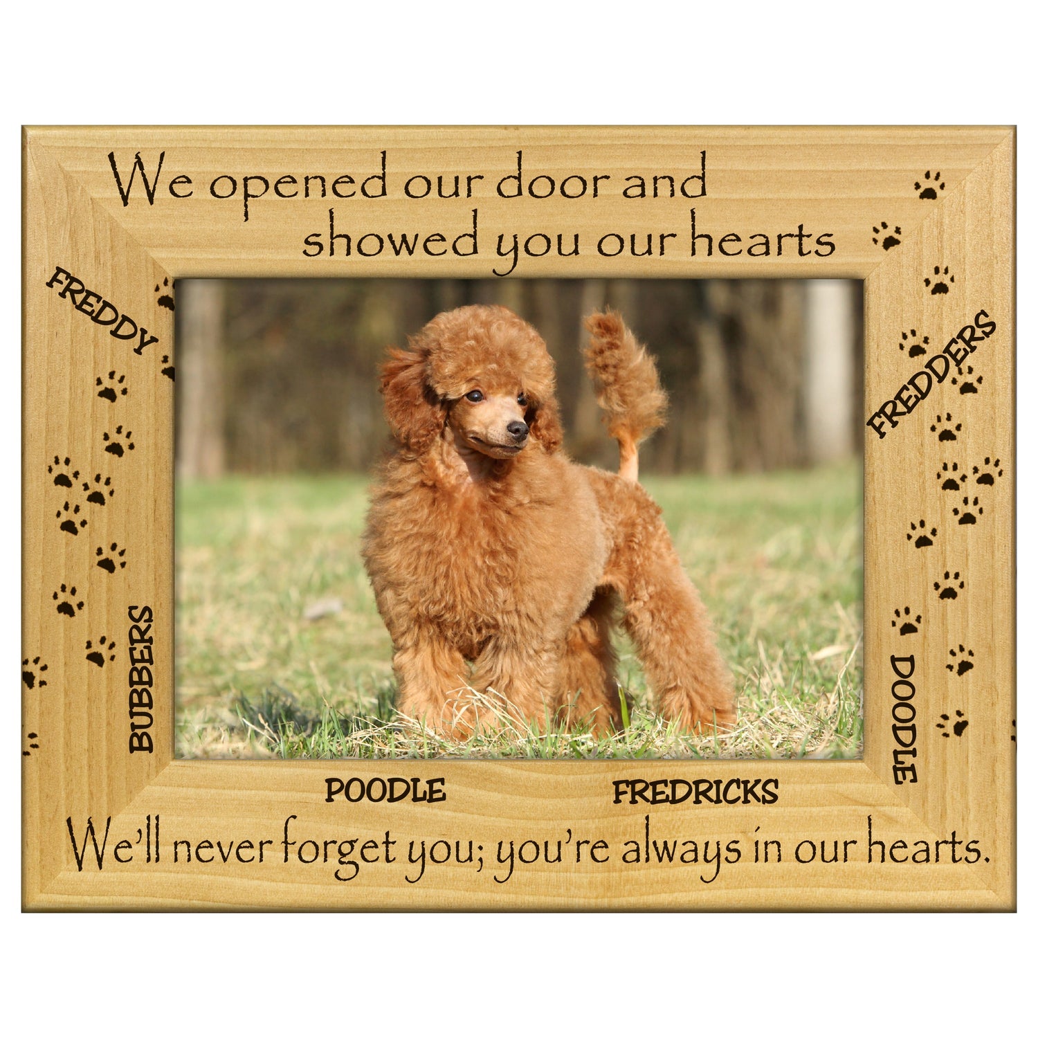 Celebrate the cherished memories of your beloved pet with our engraved wooden picture frame, designed specifically for pet memorials. This beautifully crafted frame allows you to personalize it with your pet's nicknames, creating a heartfelt tribute that honors their unique spirit.