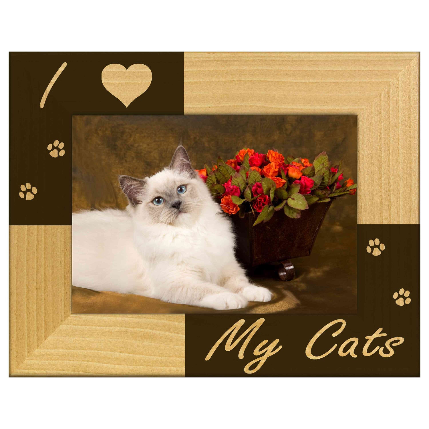 Celebrate your love for your feline friends with the I Heart My Cats Reverse Engraved Wooden Picture Frame. This charming frame features a beautifully engraved design that showcases your affection for your cats while adding a rustic touch to your home decor.