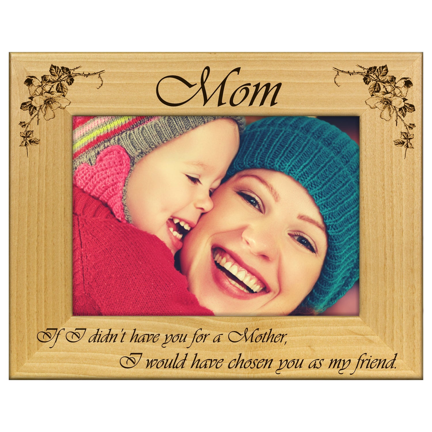Celebrate the special bond between you and your mom with our beautifully crafted wooden engraved picture frame. This charming frame features the heartfelt phrase Mom as my friend, making it the perfect gift for Mother's Day, birthdays, or just because.