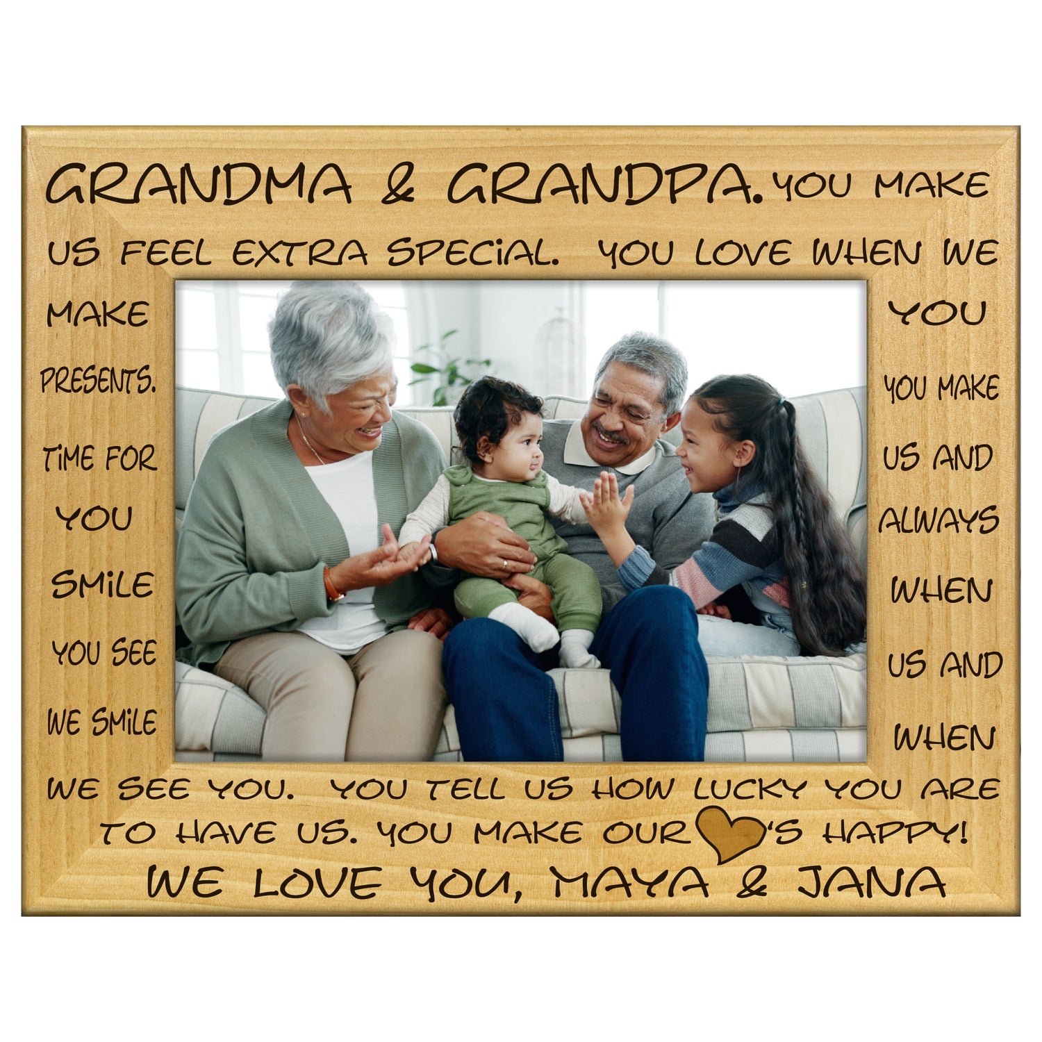 Capture the love and wisdom of your grandparents with our beautifully engraved wooden picture frame, designed specifically for Grandma and Grandpa. This charming frame not only showcases your favorite family photos, but also serves as a heartfelt reminder of cherished memories.