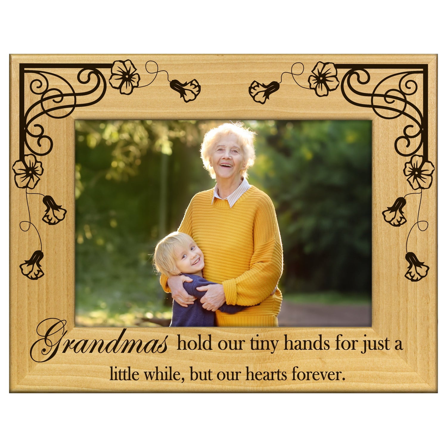 Celebrate the special bond between generations with our Grandmas Hold our Hearts engraved wooden picture frame. This charming frame adds a personal touch to any space while beautifully showcasing your favorite memories with Grandma.