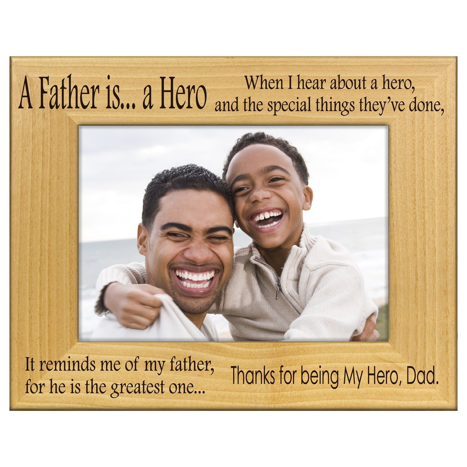 Celebrate the superhero in your life with our Father is a Hero engraved wooden picture frame. This frame not only showcases your favorite memories, but also serves as a heartfelt tribute to dad's unwavering strength and love.