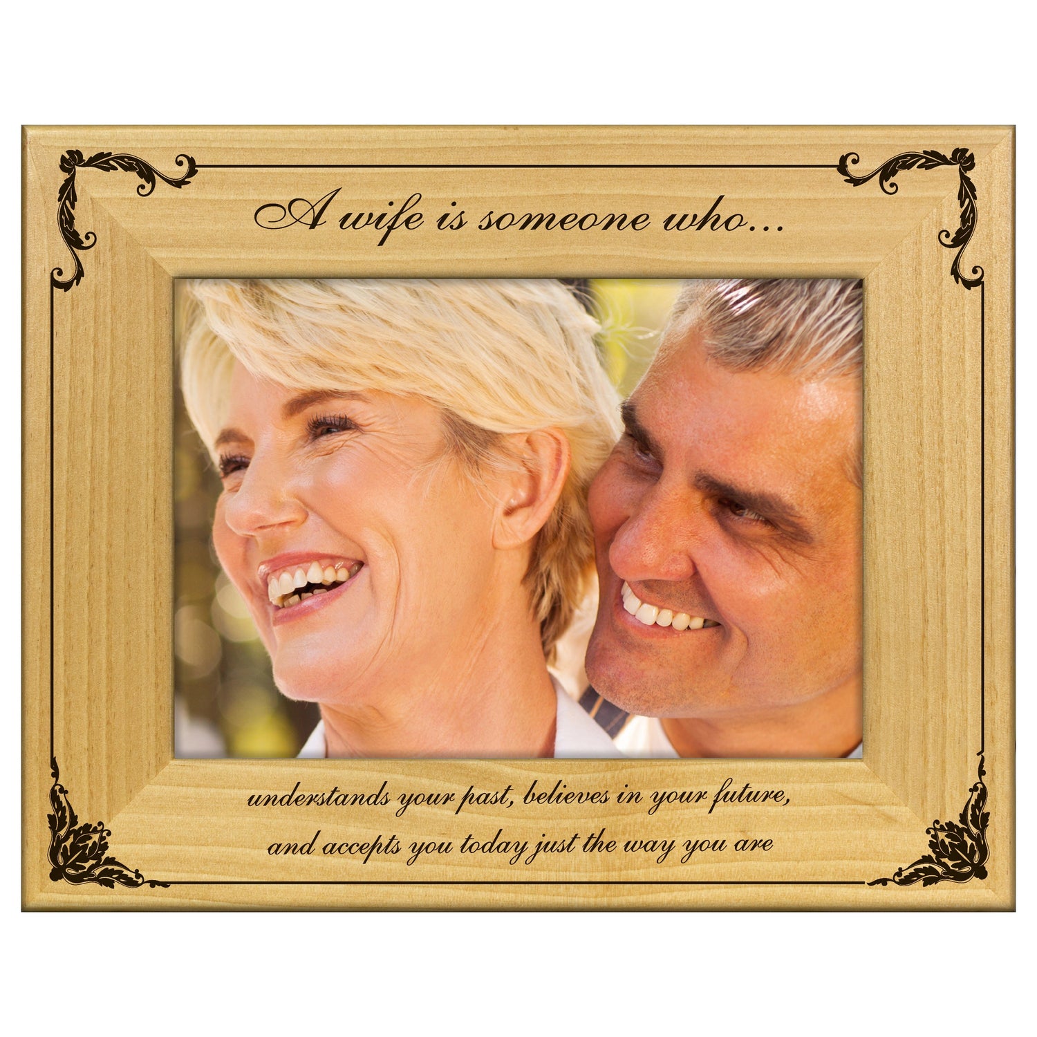 Capture the essence of love with our beautifully crafted wooden engraved picture frame, designed especially for the special wife in your life. This elegant frame not only showcases your favorite memories, but also features a heartfelt engraving that celebrates your bond.