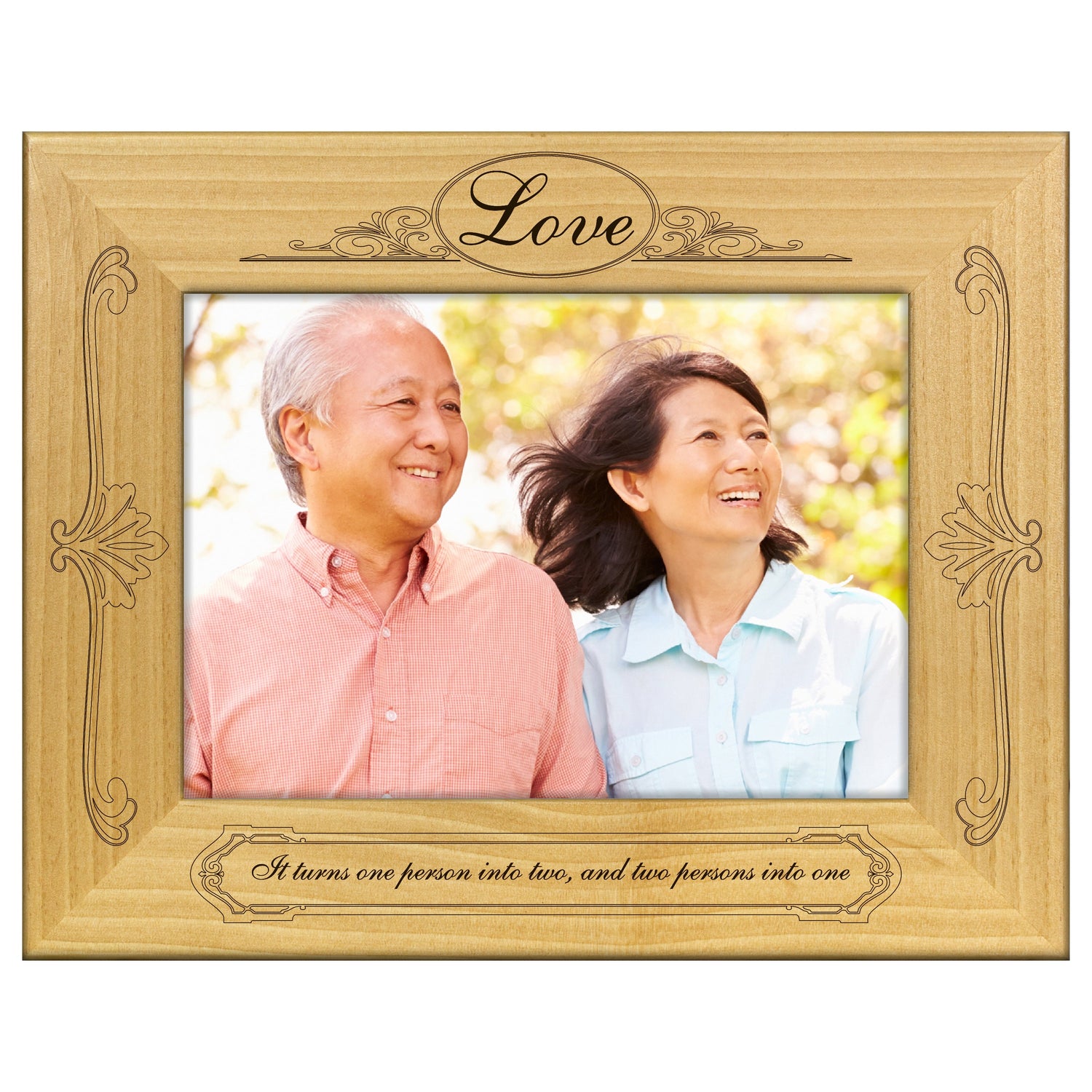 Capture the essence of your love story with our Love Turns Two Into One wooden engraved picture frame. This beautifully crafted frame not only showcases your favorite memories, but also serves as a heartfelt reminder of the bond you share.