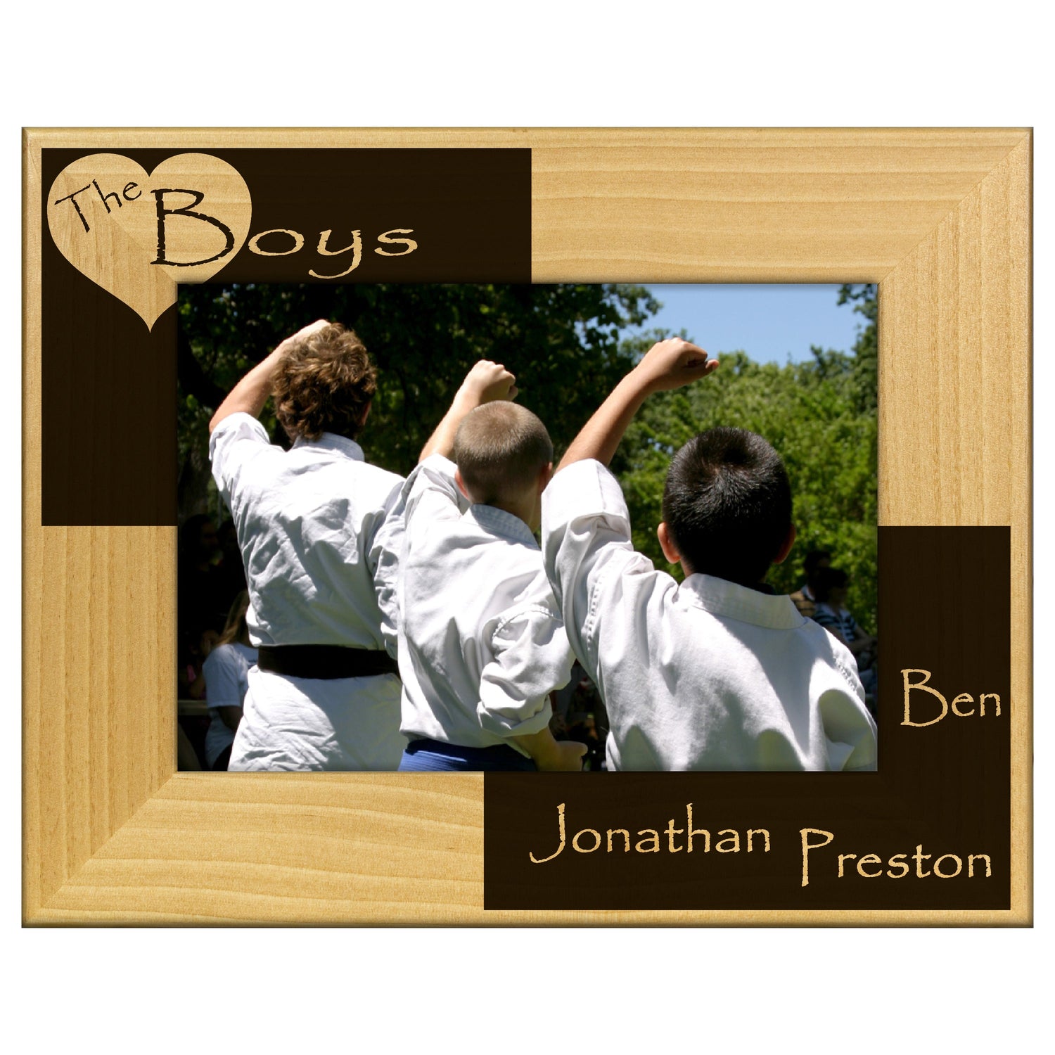 Capture your favorite memories with the Heart the Boys Engraved Wooden Picture Frame, a charming addition to any home decor. This frame features a beautifully engraved design that adds a personal touch to your cherished photos.