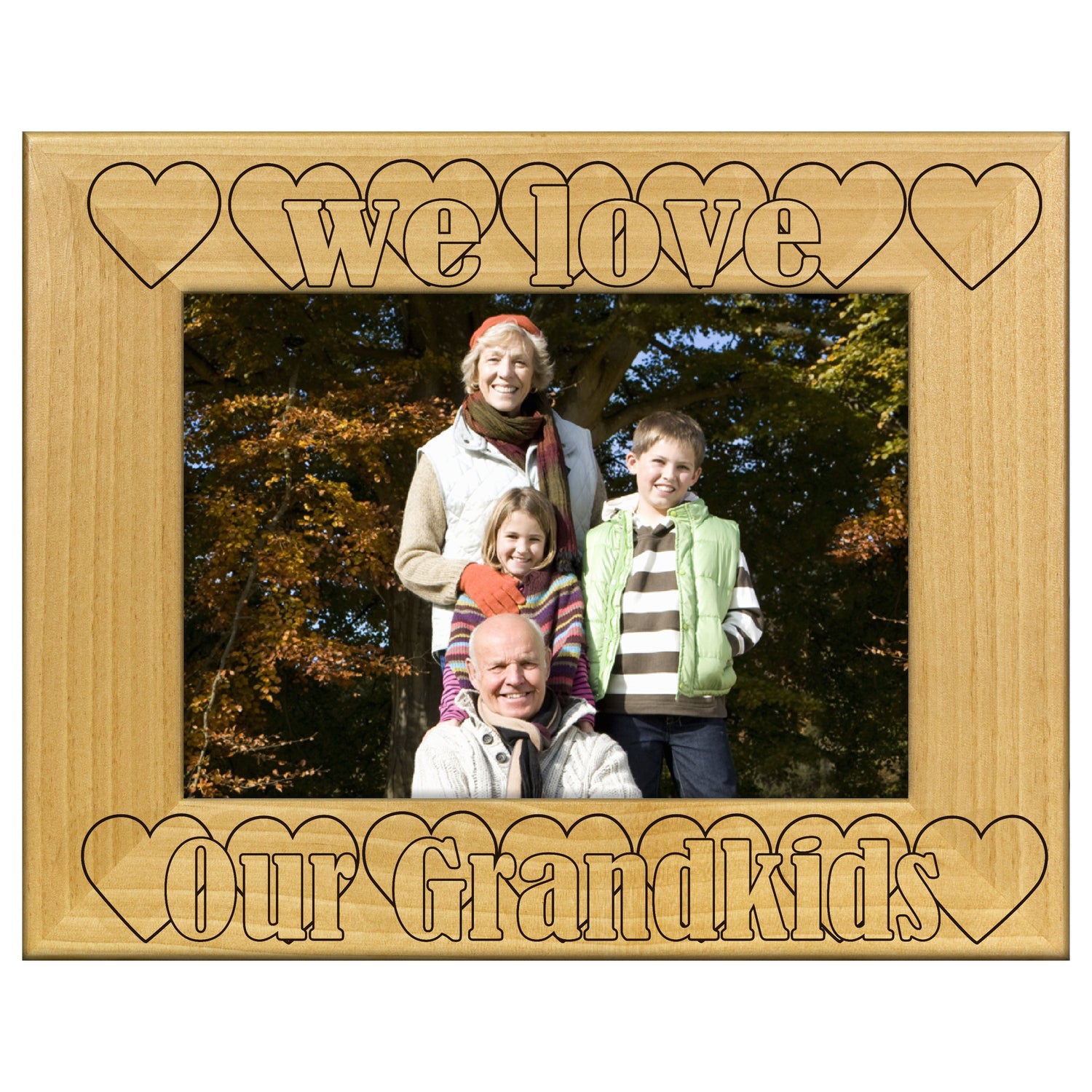 Celebrate the joy of family with our We Love Our Grandkids engraved wooden picture frame. This charming frame adds a personal touch to any space while showcasing your favorite memories with your grandkids.