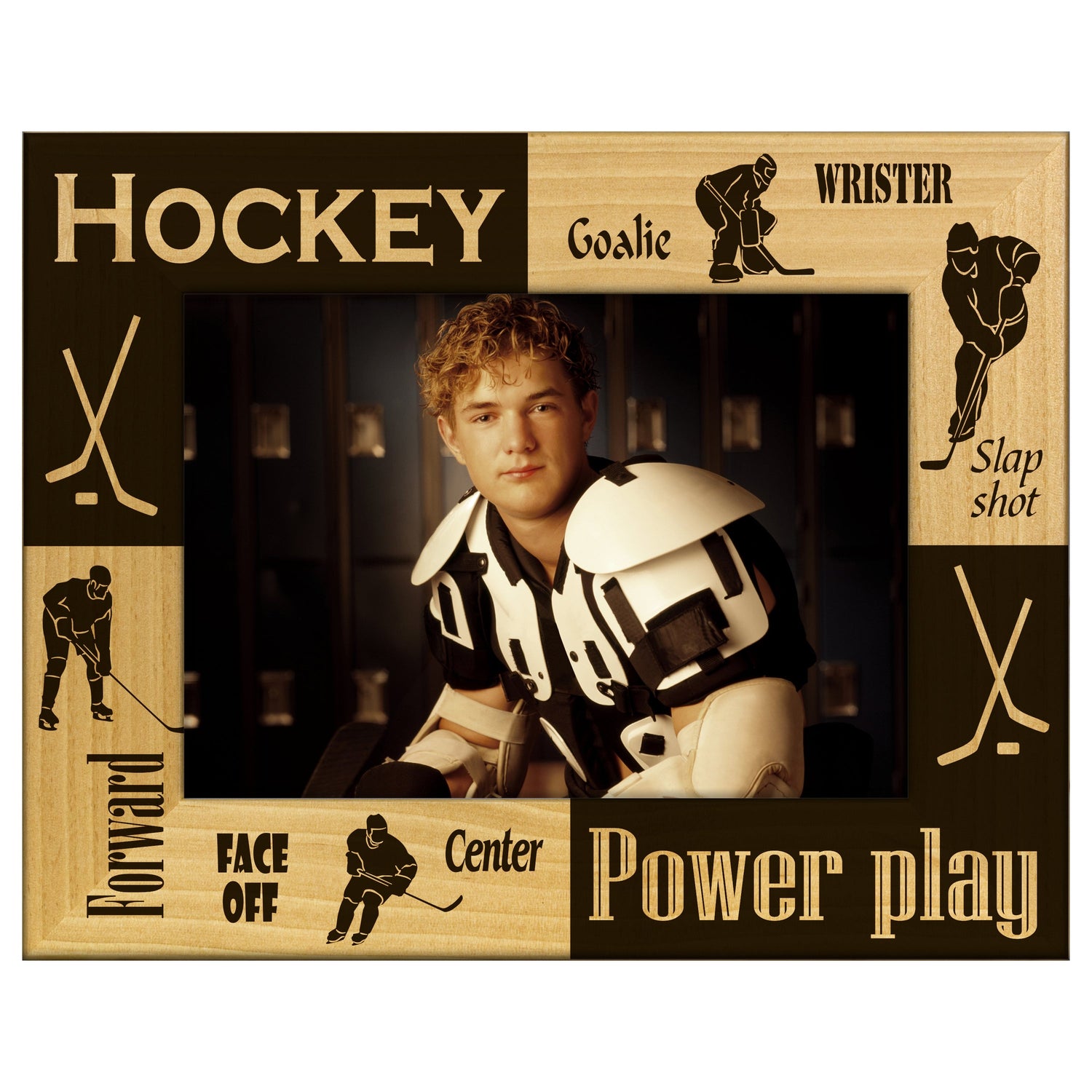 Capture your favorite hockey memories with our stunning engraved wood frame. This frame features a sleek design and personalized engraving that adds a unique touch to your home or office. Perfect for showcasing team photos, game highlights, or cherished moments with friends and family.