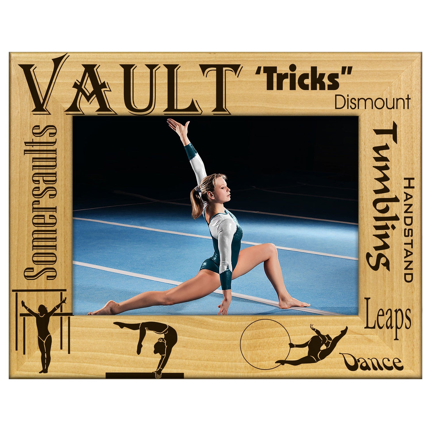 Celebrate your gymnastics achievements with our beautifully engraved wood frame. This stylish frame not only showcases your favorite photos but also adds a personal touch with its unique engraving.