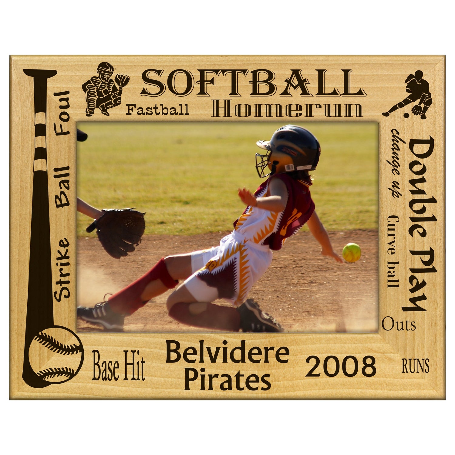 Celebrate your love for softball with our beautifully engraved wood frame. This stylish frame is perfect for showcasing your favorite team photo or a cherished memory from the field.