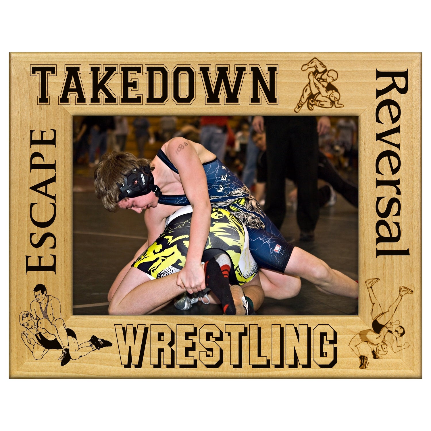 Capture your wrestling memories in style with our wrestling engraved wood picture frame. This frame features a unique wrestling design that adds a personal touch to any space. Perfect for showcasing your favorite action shots or team photos, it makes a great gift for wrestlers, coaches, or fans.