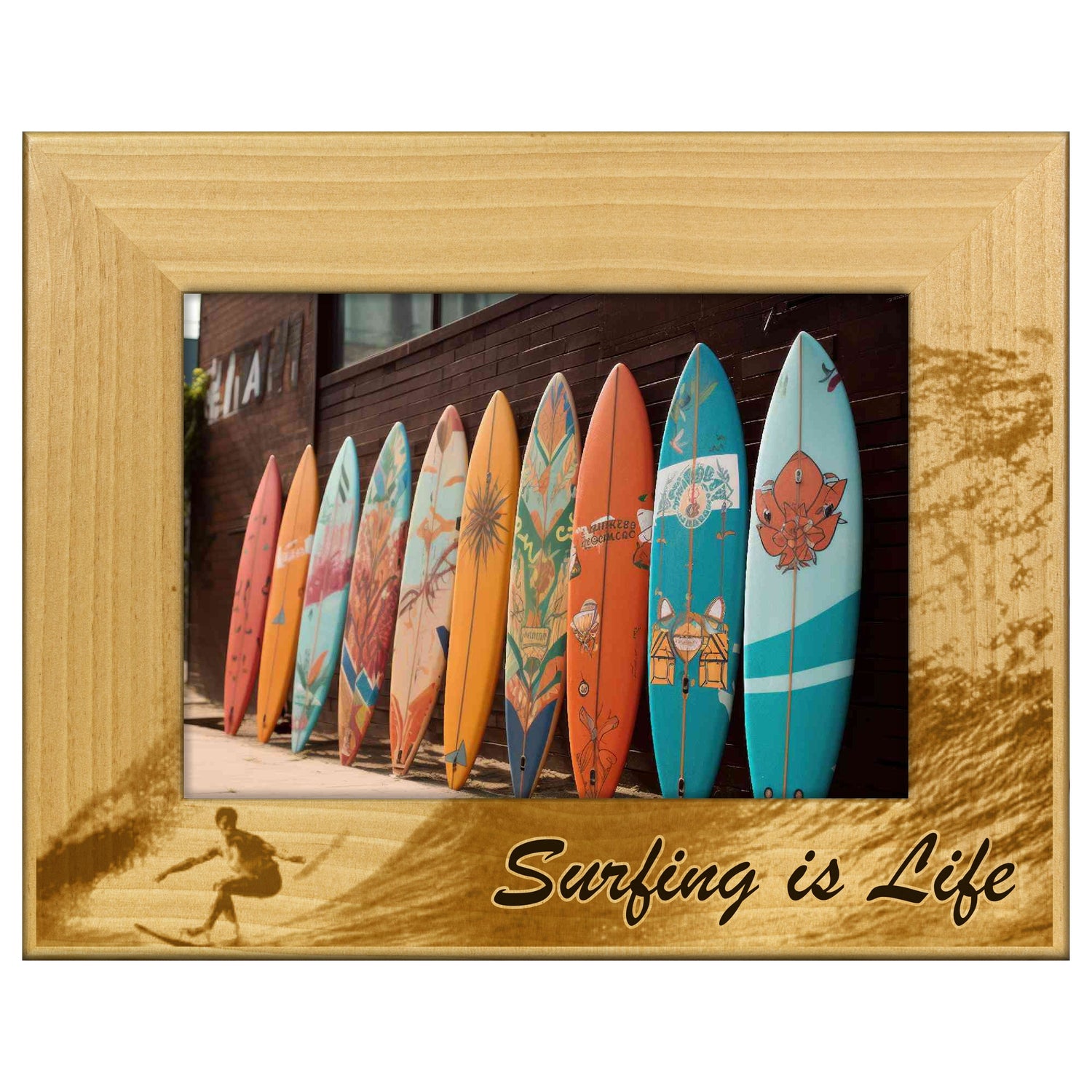 Capture your favorite surfing memories with our Surfing is Life engraved wooden picture frame. This frame not only showcases your cherished photos but also adds a touch of beachy vibes to any space.